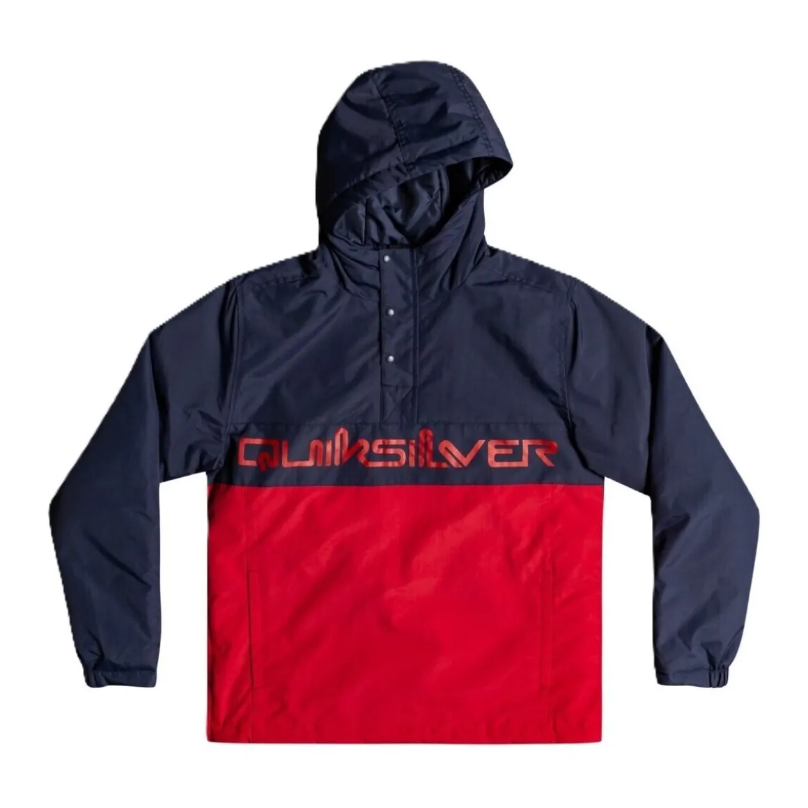 Coupe-vent Quiksilver pour enfant, bicolore, demi zip, 2 poches zippées et zip sur les côtés et large logo sur la poitrine. COULEUR : rouge et marine MATIERE : 100% nylon REF. EQBJK03255 BYJ0