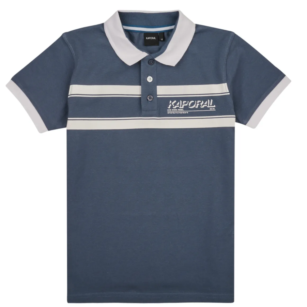 Les enfants ont tous compris que le Polo Kaporal, c’est le top de la tendance ! Ce modèle est composé en coton (100%) et offre une couleur bleu marine. On adapte son style selon son emploi du temps : avec des baskets en escapade urbaine, des chaussures bateau au bureau ou des tongs en vacances.