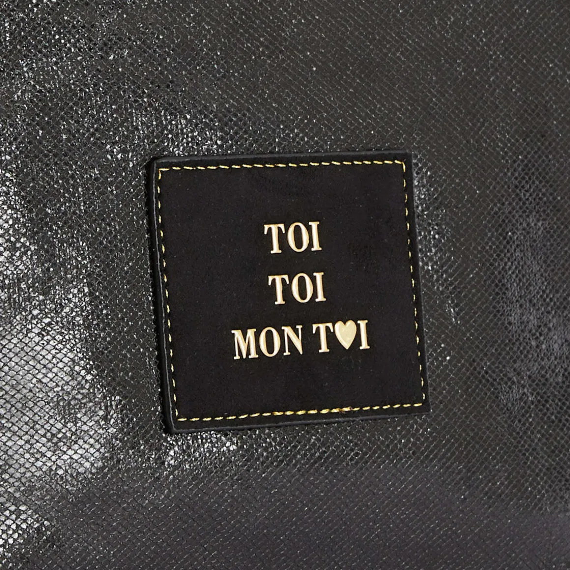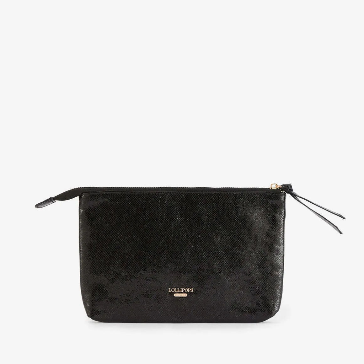 Pochette noire effet glitterFermeture zippéeLogo Lollipops en relief à l’arrièreMessage sur patch en reliefUne poche zippée et une poche plaquéeHauteur : 15 cmLargeur : 2 cmLongueur : 25 cmCollection : Romane