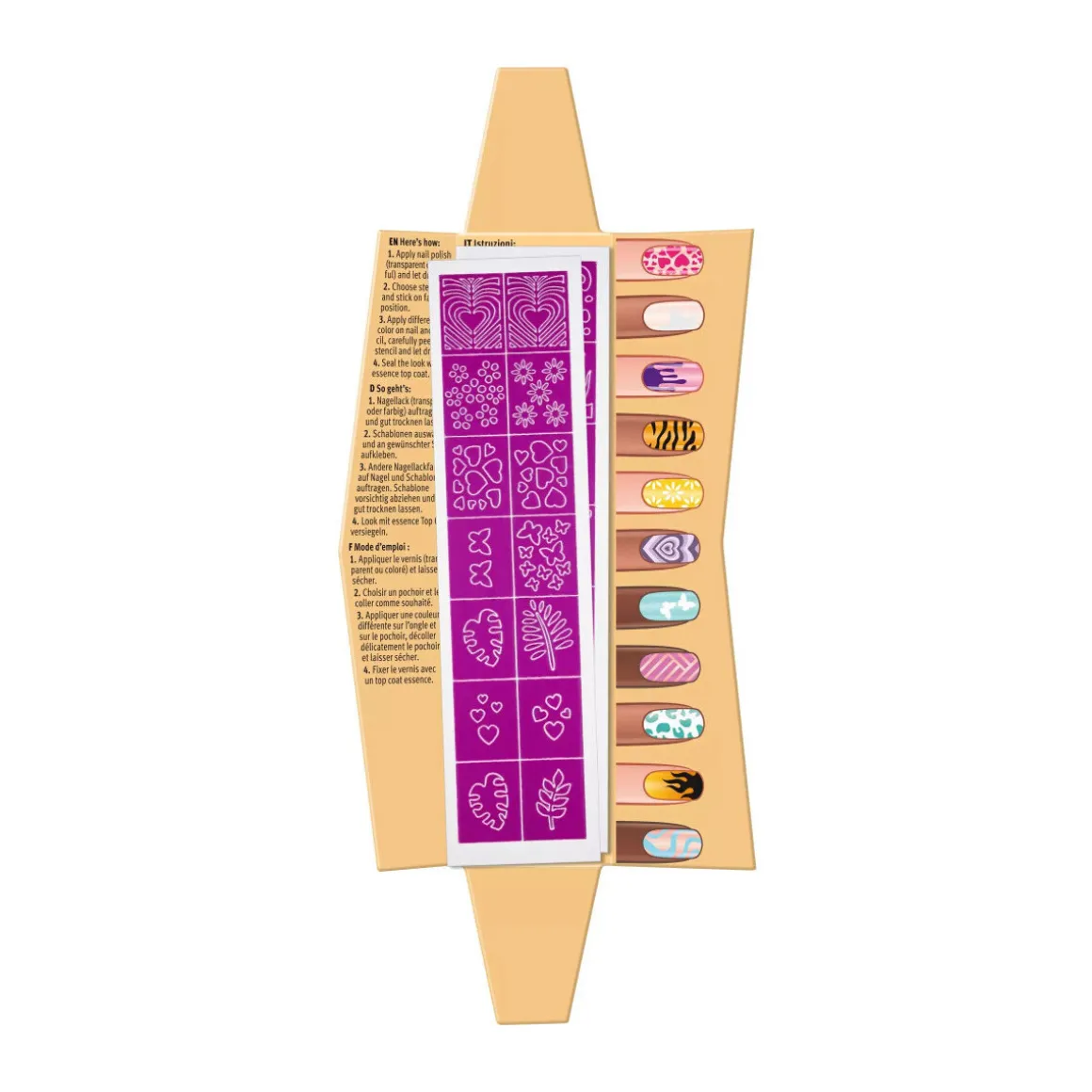 Les Pochoirs pour Ongles Nail Art Stencils Essence sont parfaits pour réaliser des créations Nail Art uniques, que vous soyez débutant ou expert. Faciles à utiliser et compatibles avec tous les vernis à ongles, ces pochoirs autocollants permettent de créer des manucures professionnelles à la maison. Les Pochoirs pour Ongles Nail Art Stencils Essence sont un incontournable pour toute passionnée de Nail Art. Idéals pour les débutants comme pour les expertes, ces pochoirs autocollants permettent de réaliser des créations spectaculaires en quelques gestes simples. Que vous souhaitiez ajouter un motif délicat ou un design audacieux, ces pochoirs Essence vous aident à personnaliser vos ongles en toute facilité. Faciles à poser et à retirer, ils offrent une solution rapide pour des manucures dignes d’un salon, sans complication.Grâce à la variété de motifs inclus dans ce kit de pochoirs, vous avez tout ce qu’il faut pour exprimer votre créativité. Les Pochoirs pour Ongles Nail Art Stencils Essence sont conçus pour s’adapter à tous les types de vernis à ongles, offrant ainsi une grande flexibilité. Que vous préfériez un style minimaliste ou des designs plus complexes, vous pouvez obtenir des résultats professionnels en un rien de temps. Les pochoirs adhèrent parfaitement à la surface de vos ongles et ne laissent aucun résidu lors du retrait.Ces pochoirs Essence sont parfaits pour une manucure maison de qualité. Vous pouvez les utiliser pour créer des motifs tendance ou des designs personnalisés, tout en ayant la certitude que votre Nail Art sera soigné et durable. Adoptez les Pochoirs pour Ongles Nail Art Stencils Essence et faites briller vos ongles avec des créations originales et uniques.