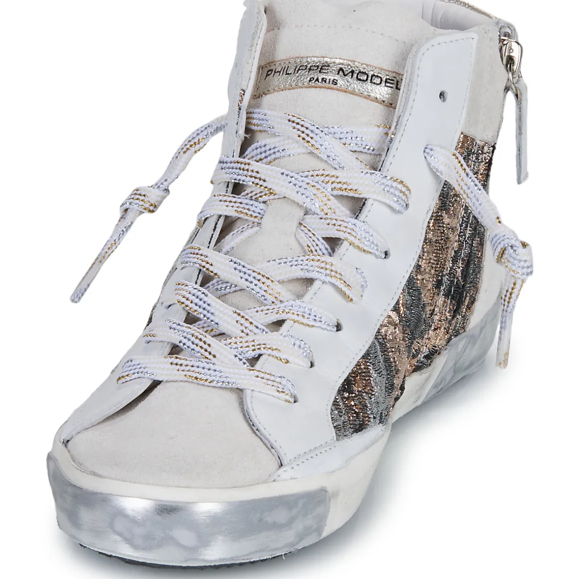 Des lignes dessinant un tracé dynamique et un esprit qui renforce son degré de tendance : cette basket montante porte l’âme Philippe Model. Les amatrices de sneakers ne s’y tromperont pas.
