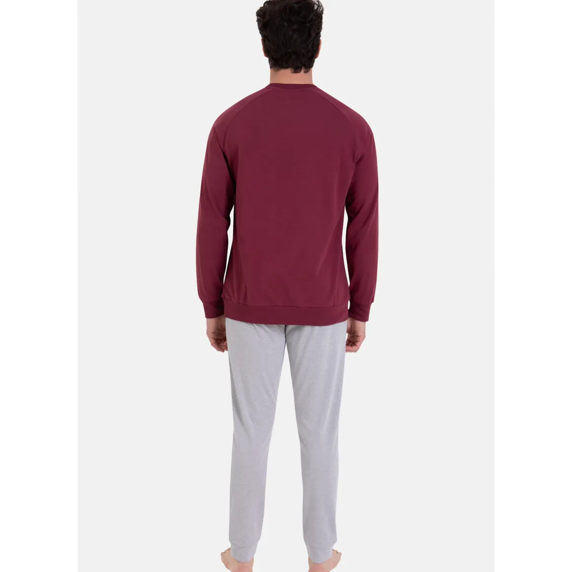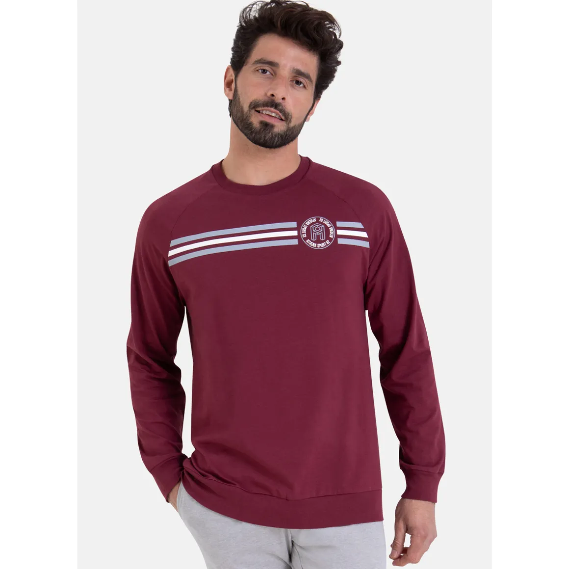 Caractéristiques de ce pyjama ATHENA SPORT CHINE long col O, Haut de pyjama manches longues raglan, Sérigraphie poitrine, Bas jogger gris chiné, Poches côtés, Cordon de serrage, Label OEKO-TEX® standard 100 : garantit l’absence de substances nocives pour la santé, Livré en boîte carton