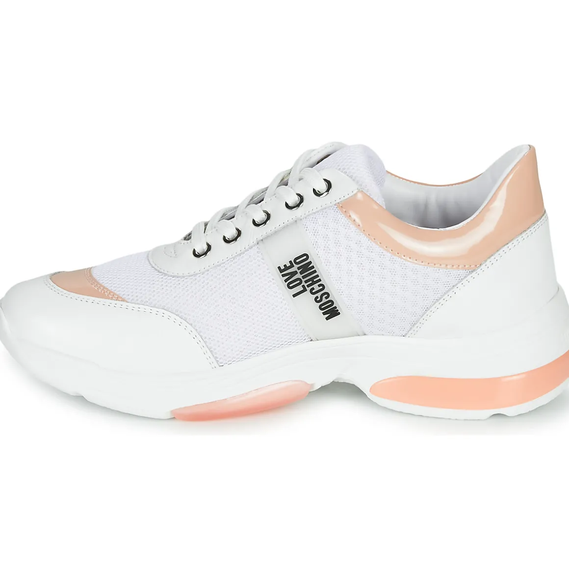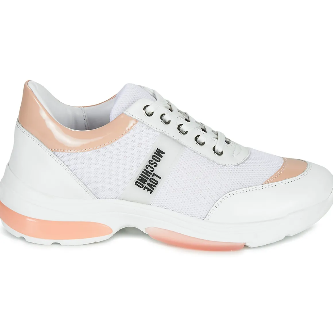 Si votre style à vous se situe entre le sportswear et l’urbain, voici la basket dont vous rêviez, sortie de chez Love Moschino ! Cette saison on la retrouve en version glamour, juchée sur un talon de 5 cm. Le modèle incontournable du moment.