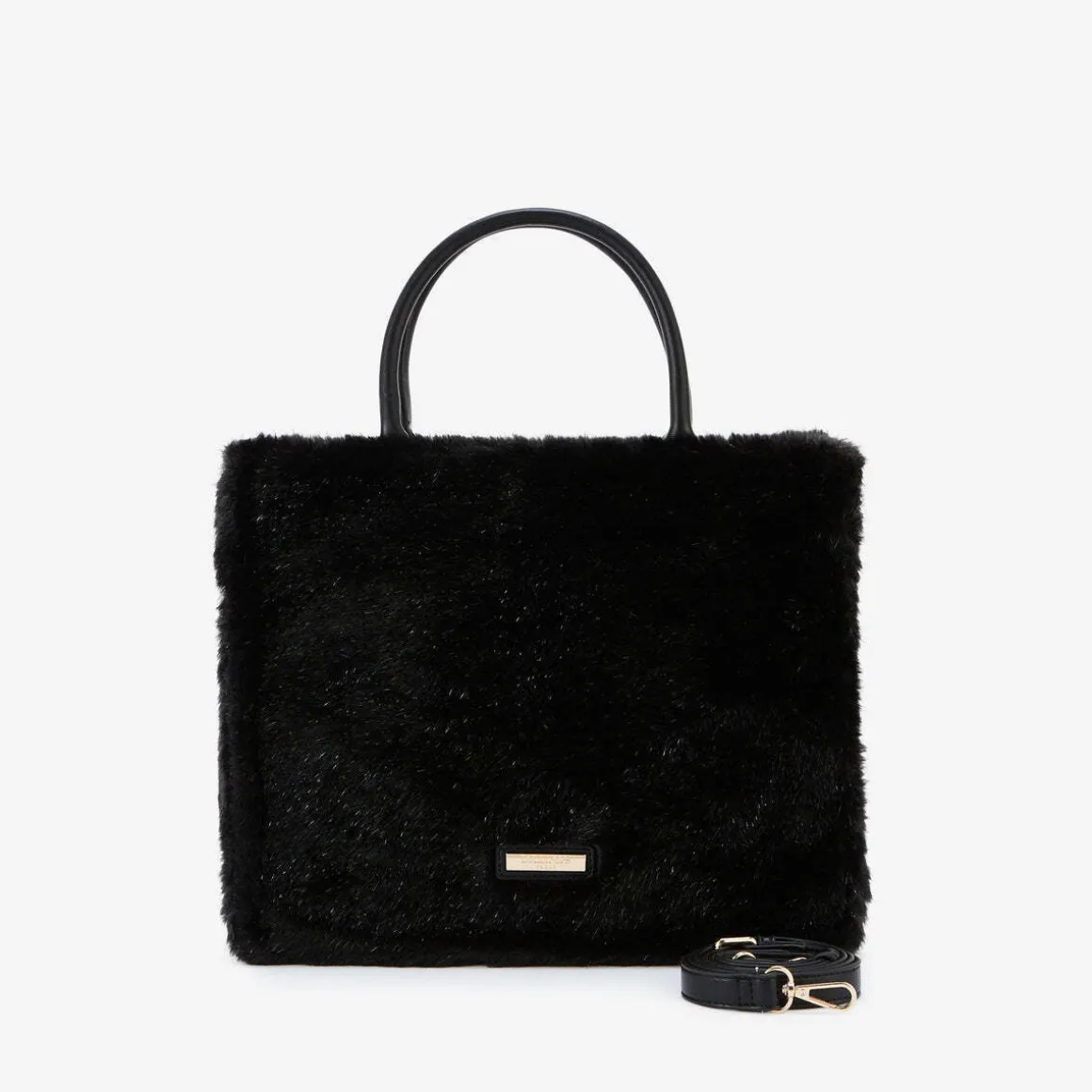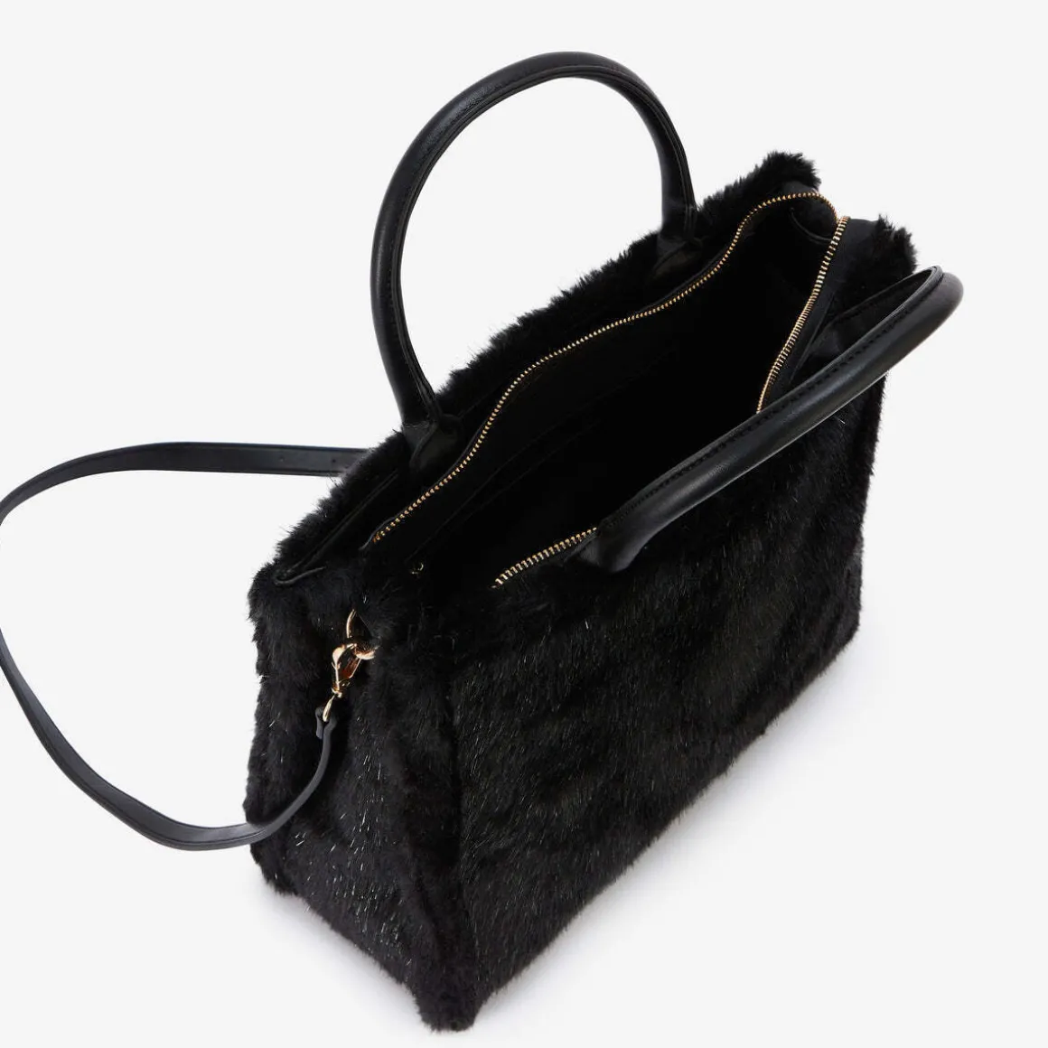 Sac en fausse fourrure noireBandoulière réglable et amovibleDeux anses en synthétiqueLogo Lollipops en relief doré à l’avantFermeture principale zippéeUne poche zippée à l’arrièreDeux poches plaquées et une poche zippée à l’intérieurHauteur : 27 cmLargeur : 11 cmLongueur : 34 cmCollection : Rakita