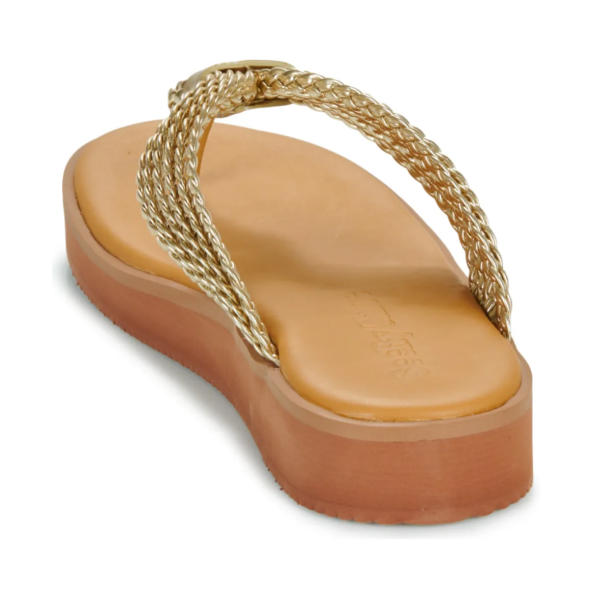 Passer l’été les doigts de pieds en éventail se fera en toute liberté dans cette paire de tongs ! Doté d’un coloris doré, ce modèle ne manquera pas de donner une petite touche estivale et décontractée à nos tenues de saison. Son entredoigt en textile et sa semelle en caoutchouc sont là pour garantir un confort quotidien. Prête pour la danse des tongs avec See by Chloé ?