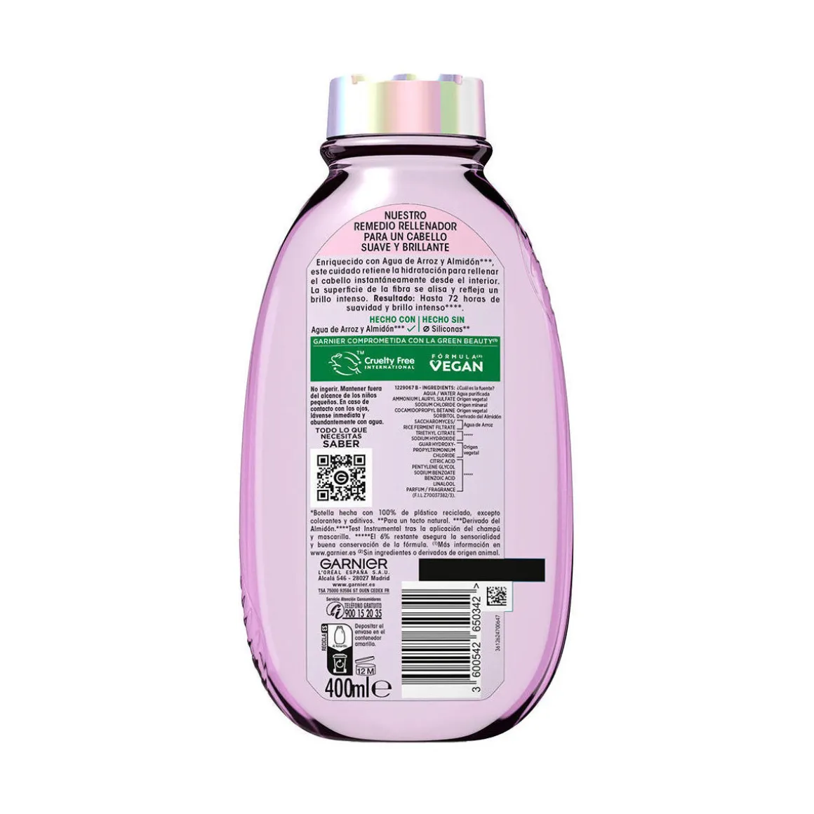 Shampooing Garnier Original Remedies à l’Infusion d’Eau de Riz, parfait pour les longueurs ternes. Cette formule à base d’eau de riz nourrit et lisse la fibre capillaire, apportant douceur et éclat. Sans silicone, elle offre une sensation authentique. Grâce à l’infusion d’Eau de Riz, vos cheveux bénéficieront de douceur et de brillance pouvant durer jusqu’à 72H*. Une approche globale pour des cheveux resplendissants, à découvrir avec la collection Original Remedies. Formule végétale, composée de 94% d’ingrédients d’origine naturelle. *Tests effectués après application du shampoing et du soin.