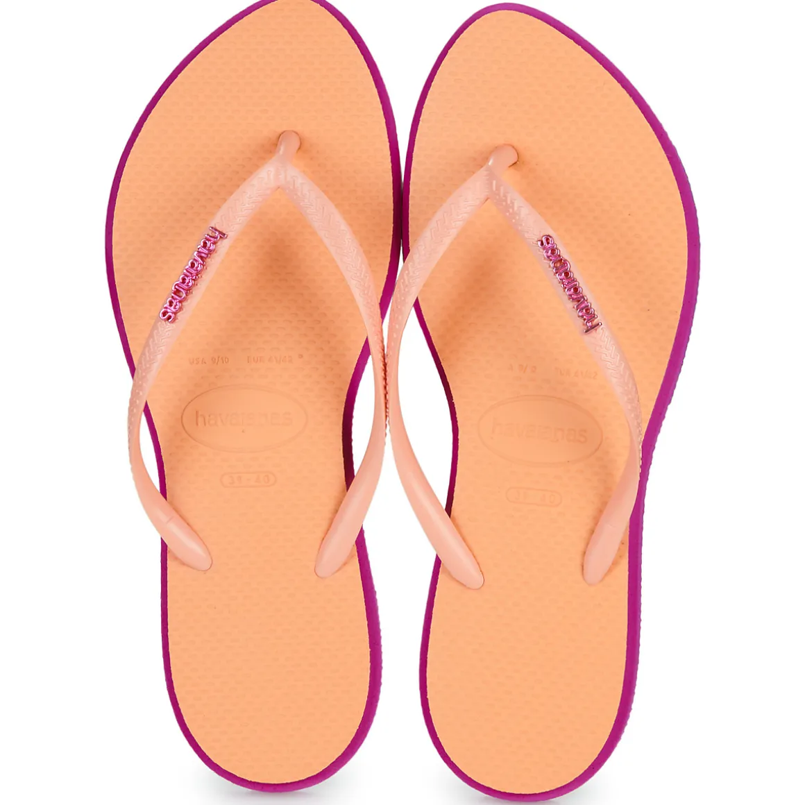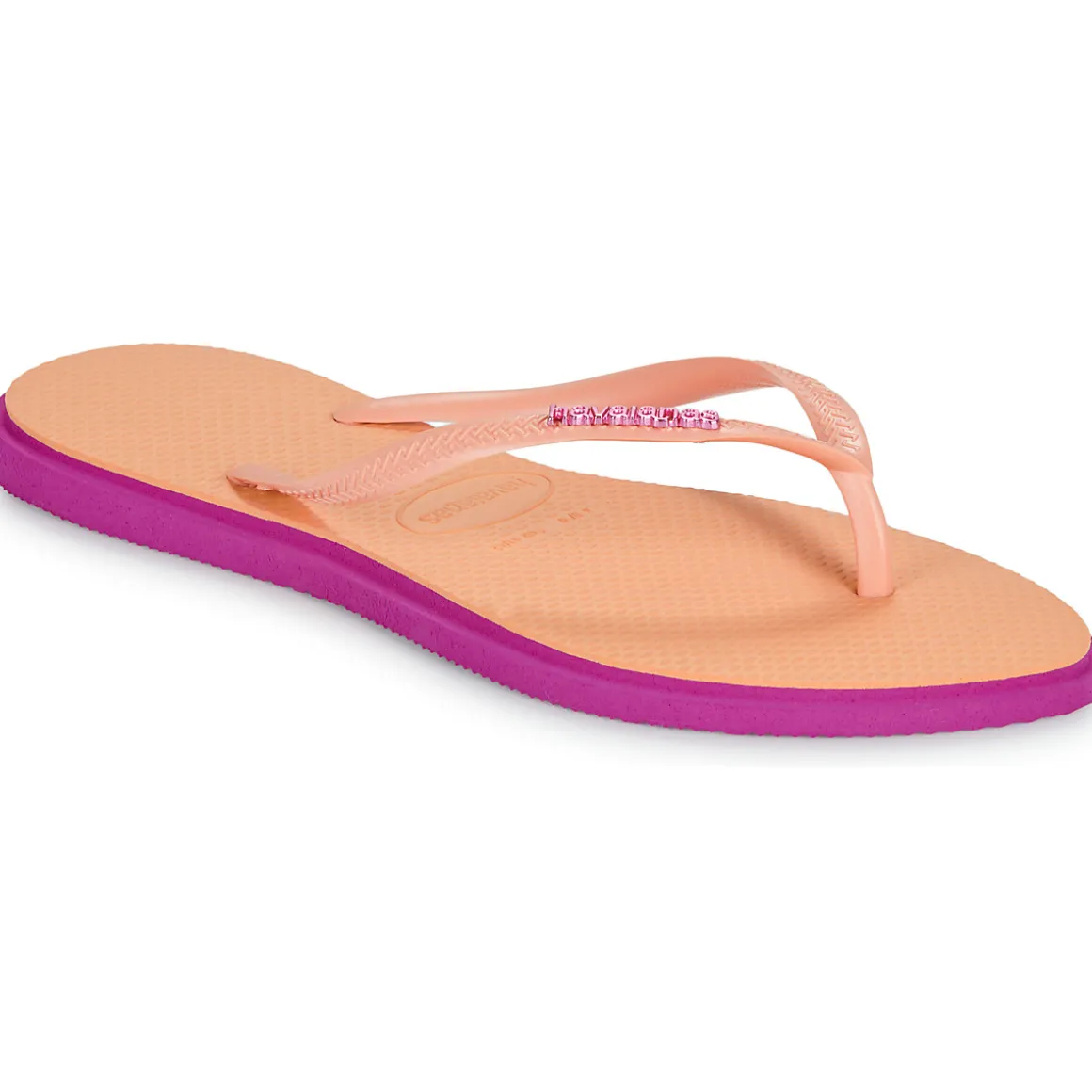 Vive les vacances ! La période des tongs est arrivée ! Ici présentée dans un coloris orange, elle fera assurément son petit effet. Le confort est garanti par un entredoigt en caoutchouc et une semelle en caoutchouc. On dit merci à qui ? Havaianas bien sûr !