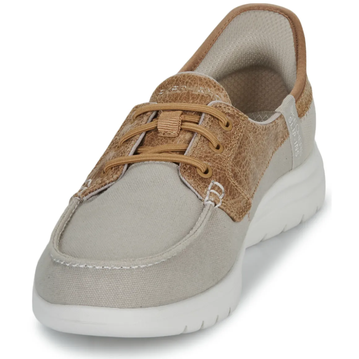 Skechers a créé la chaussure bateau Slip-ins: On-the-go Flex – Palmilla pour apporter une touche de nonchalance aux looks citadins. Avec sa tige en textile beige et sa doublure en synthétique agréable à porter, elle accompagnera à merveille toutes les tenues de saison. Pour finir, elle fait état d’une semelle extérieure en caoutchouc. Sans aucun doute l’incontournable du moment !