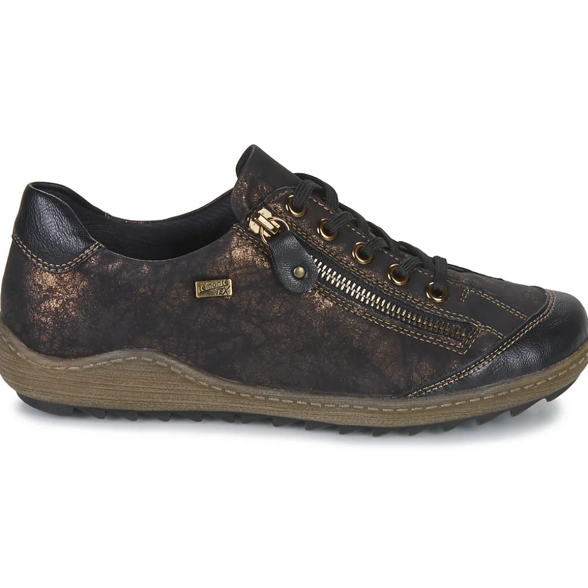 Des lignes dessinant un tracé dynamique et un esprit qui renforce son degré de tendance : cette basket montante porte l’âme Remonte Dorndorf. Du noir pour sa couleur et du synthétique pour la confection de sa tige : tels sont ses premiers attributs. A l’intérieur se cache une première de propreté en textile tandis que sa semelle est fabriquée en caoutchouc. Un modèle 100% urbain.