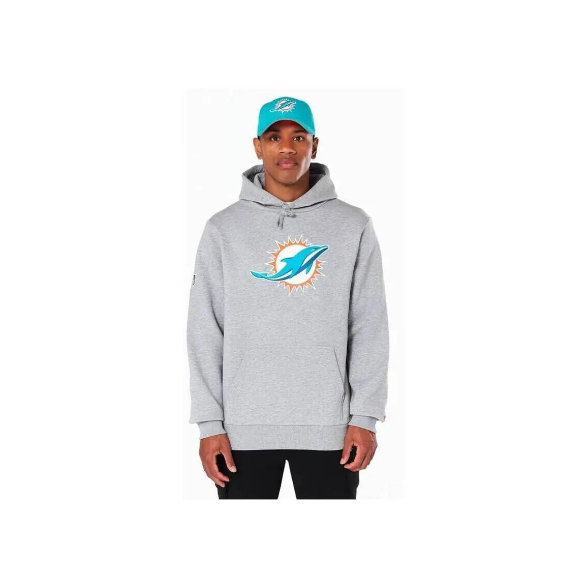 Représente les Miami Dolphins avec styleCe sweat à capuche gris NFL Miami Dolphins signé New Era est un essentiel pour tout fan de football américain. Allie look sportif et authenticité avec cette pièce incontournable.Design officiel et finition haut de gammeLe logo officiel NFL apparaît sur la manche droite, tandis que le célèbre logo New Era est brodé sur la manche gauche pour une finition premium.Confort au quotidienCe hoodie est doté d’une capuche ajustable par cordon et d’une poche kangourou sur le devant, parfait pour garder les mains au chaud ou y ranger ses essentiels.Composition douce et résistanteSa matière en 80% coton et 20% polyester assure un excellent confort thermique et une bonne tenue dans le temps.Détails du produitCouleur : grisMatière : 80% coton, 20% polyesterLogo NFL sur la manche droiteNew Era brodé sur la manche gaucheCapuche à cordon de serragePoche kangourouLicence officielle NFLTailles disponibles : S à XXLComplète ton look de fan NFLAssocie ce sweat à une gorra Miami Dolphins New Era pour un look total supporter.