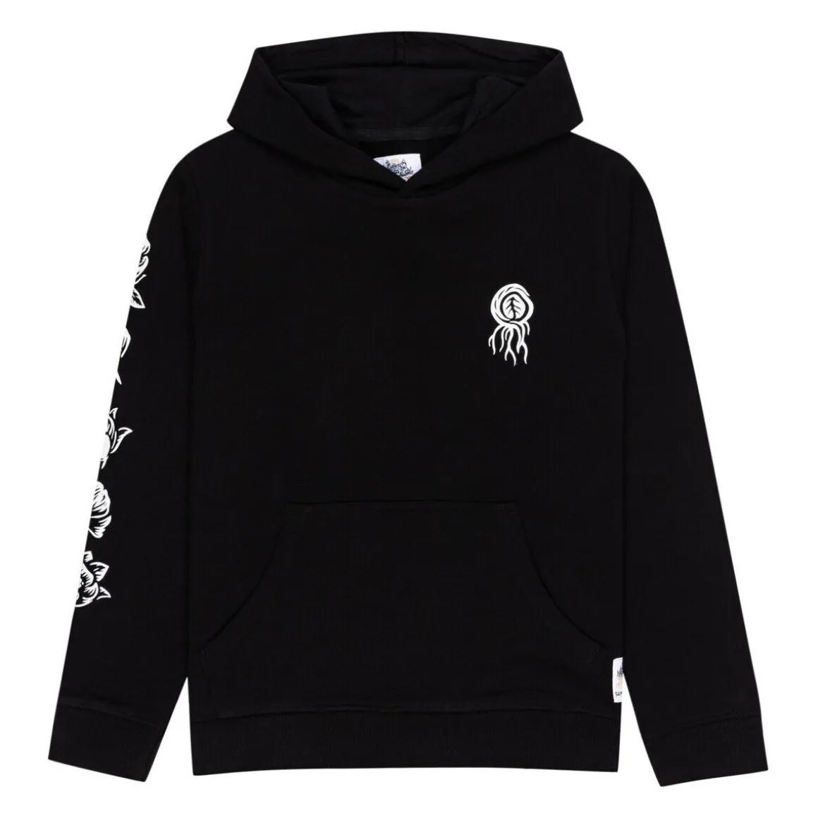 Sweat à capuche Element pour enfant, poche kangourou, design imprimés sur la manche et dans le dos et petit logo sur la poitrine. COULEUR : noir MATIERE : 100% coton REF. C2 HOB5 ELP2 3732