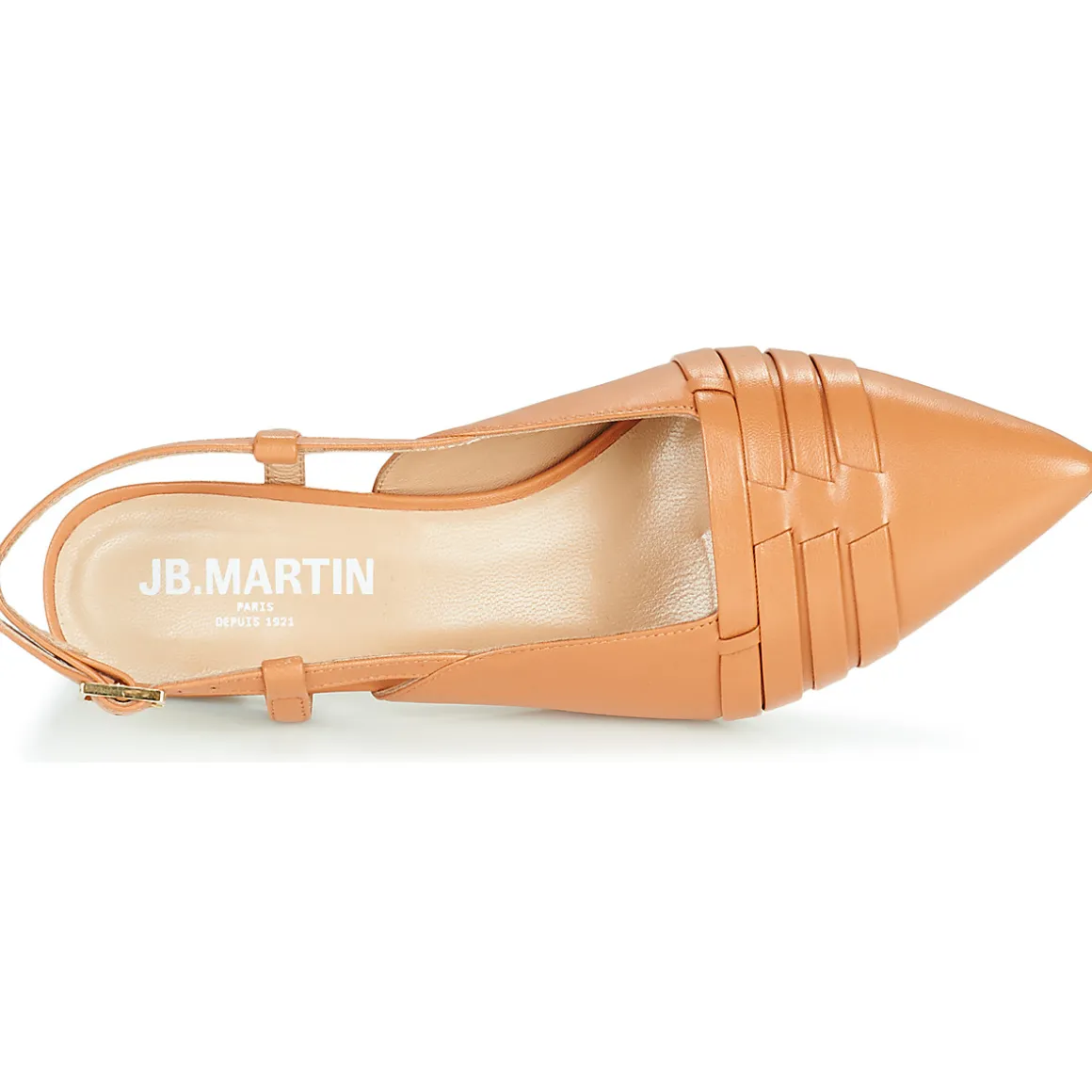 La mode est une question d’audace. JB Martin donne du relief à cet escarpin en cuir grâce à de fines brides ton sur ton sur le devant du pied. Une fine bride réglable au talon met en valeur la délicatesse de la cheville.