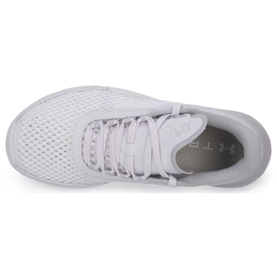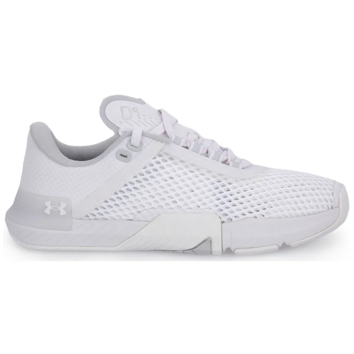 Chaussures d’entraînement UA TriBase ™ Reign 4 pour femmes, meilleur est le contact avec le sol pendant l’entraînement, meilleurs sont vos résultats. Tige en maille légère et respirante intégrée avec un matériau durable et résistant à l’abrasion et un clip de talon externe et un contrefort interne pour plus de stabilité et de soutien. La semelle entièrement en caoutchouc avec structure antidérapante dans la partie médiane enveloppe la partie latérale du pied pour offrir une plus grande durabilité et résistance à l’abrasion. Insert en caoutchouc stratégique sous la pointe pour une adhérence maximale au sol. Couleur: Blanc.