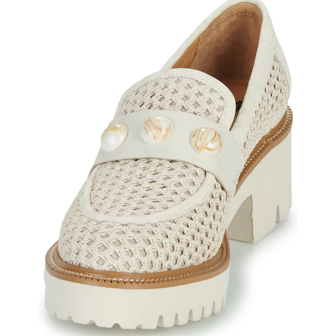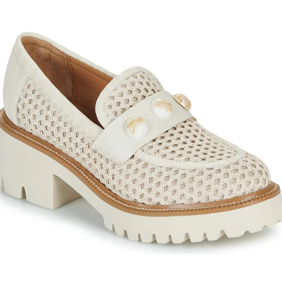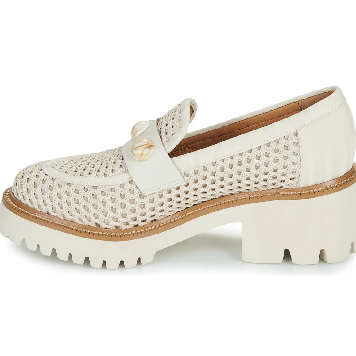Plus besoin de chercher, la perle des mocassins est là et elle est signée Mam’Zelle. De couleur blanche et confectionné en cuir et textile, il donnera du caractère à votre tenue. Le confort est assuré par une semelle en caoutchouc et une doublure en cuir. Le talon de 6 cm vous apporte un soupçon d’élégance supplémentaire !