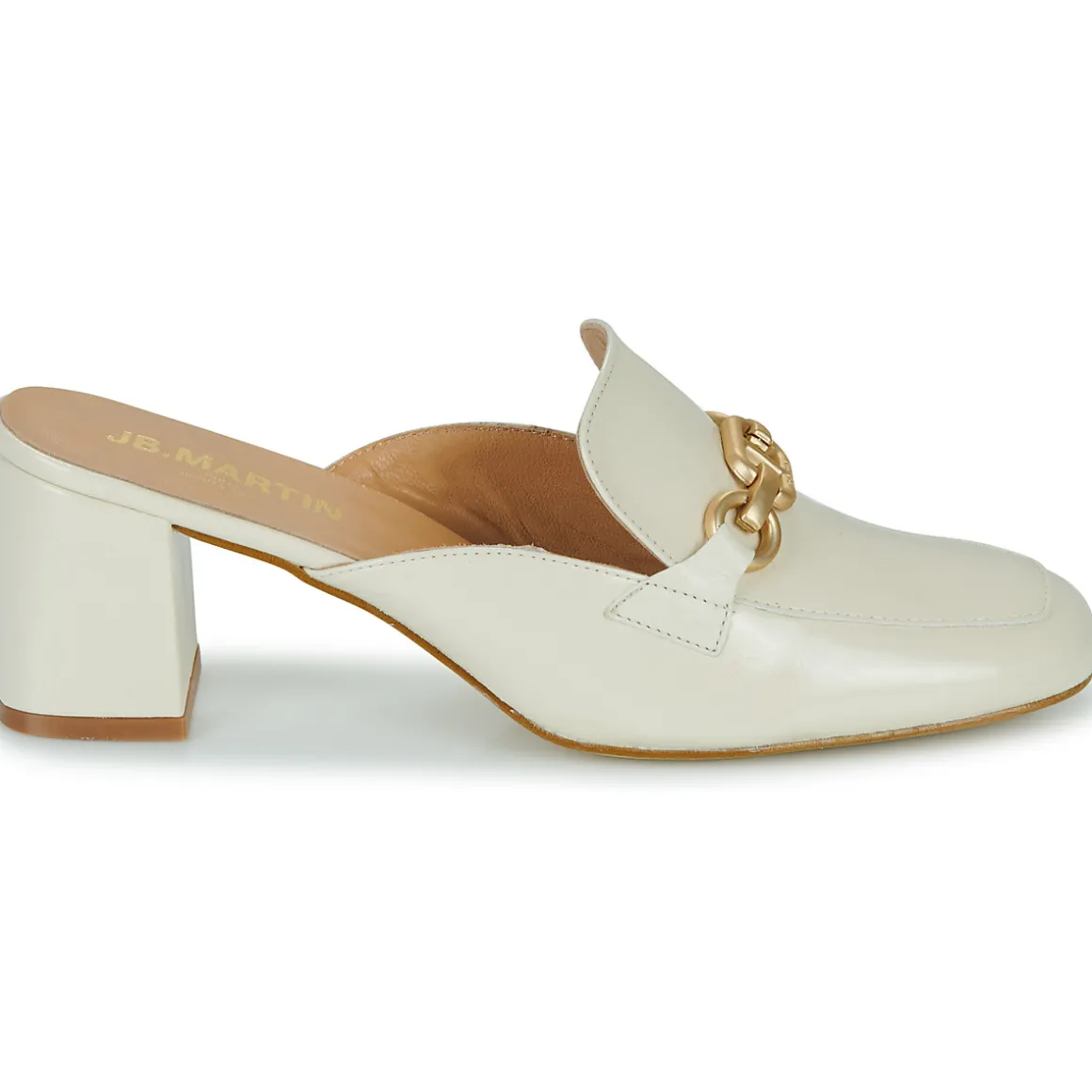La belle marque française JB Martin signe ici une mule en cuir des plus élégantes, avec son morsetto. Son talon à la forme idéale et pas trop haut en fait un modèle parfait pour afficher une allure sophistiquée tout en assurant un confort certain.