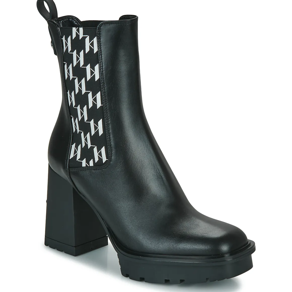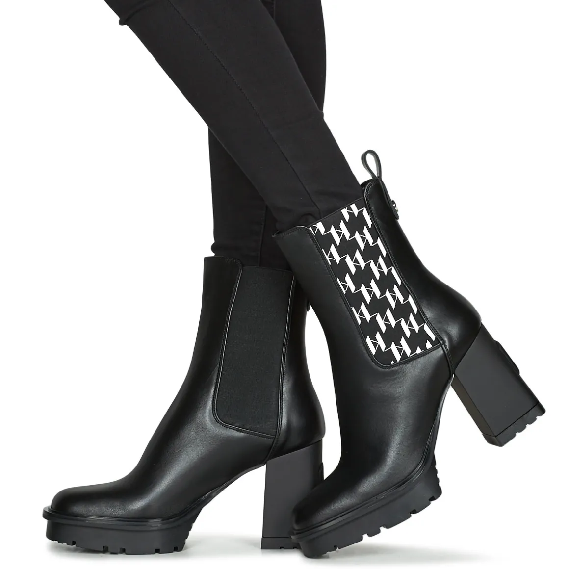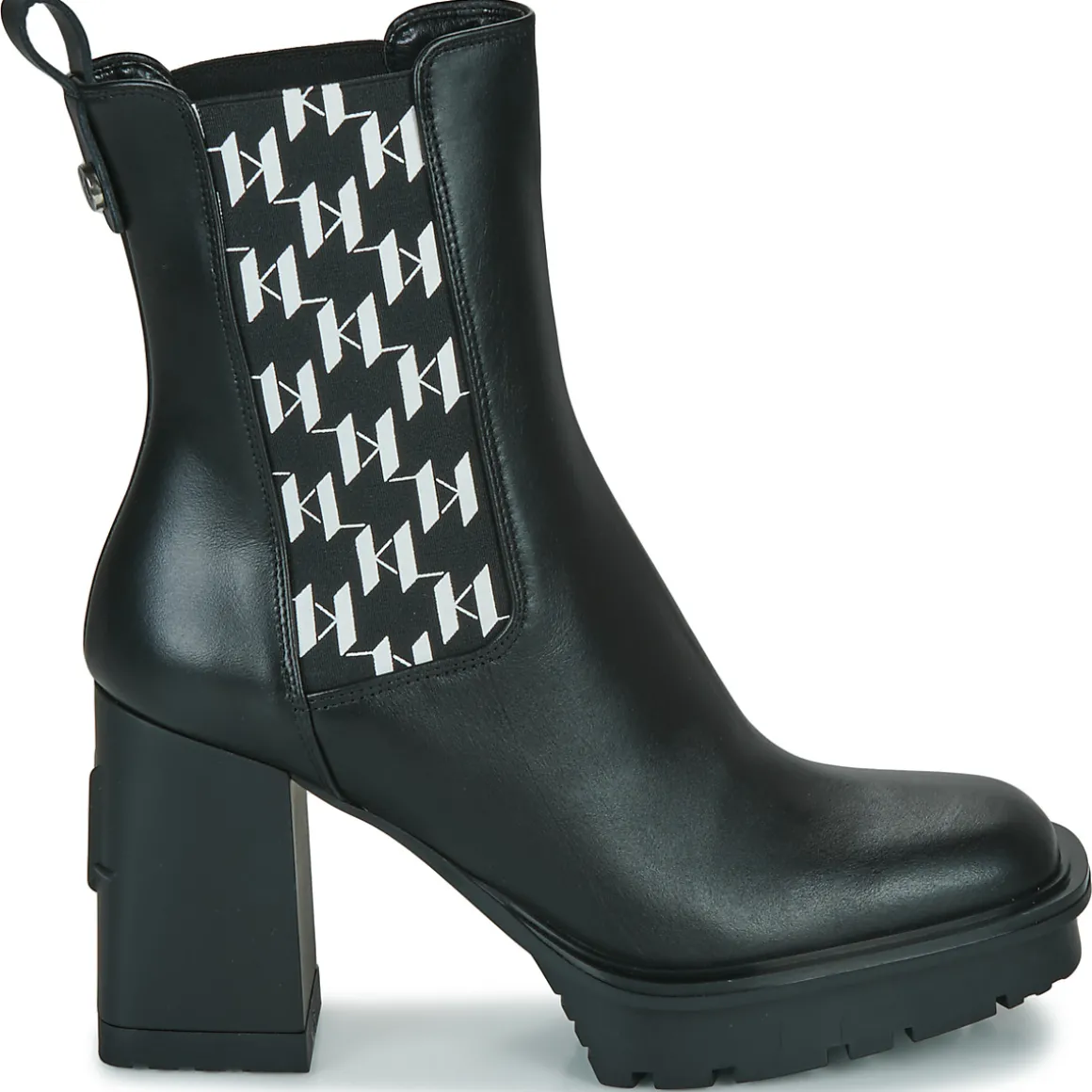 Laissez-vous séduire par cette jolie bottine de couleur noire ! Tige en cuir et semelle extérieure en synthétique : rien n’a été laissé au hasard pour nous plaire. Elle nous fera gagner une allure élancée de par un talon haut comme il faut. Chez Karl Lagerfeld, les stylistes savent comment parler aux femmes et la Voyage Vi Monogram Gore Boot en est la preuve !