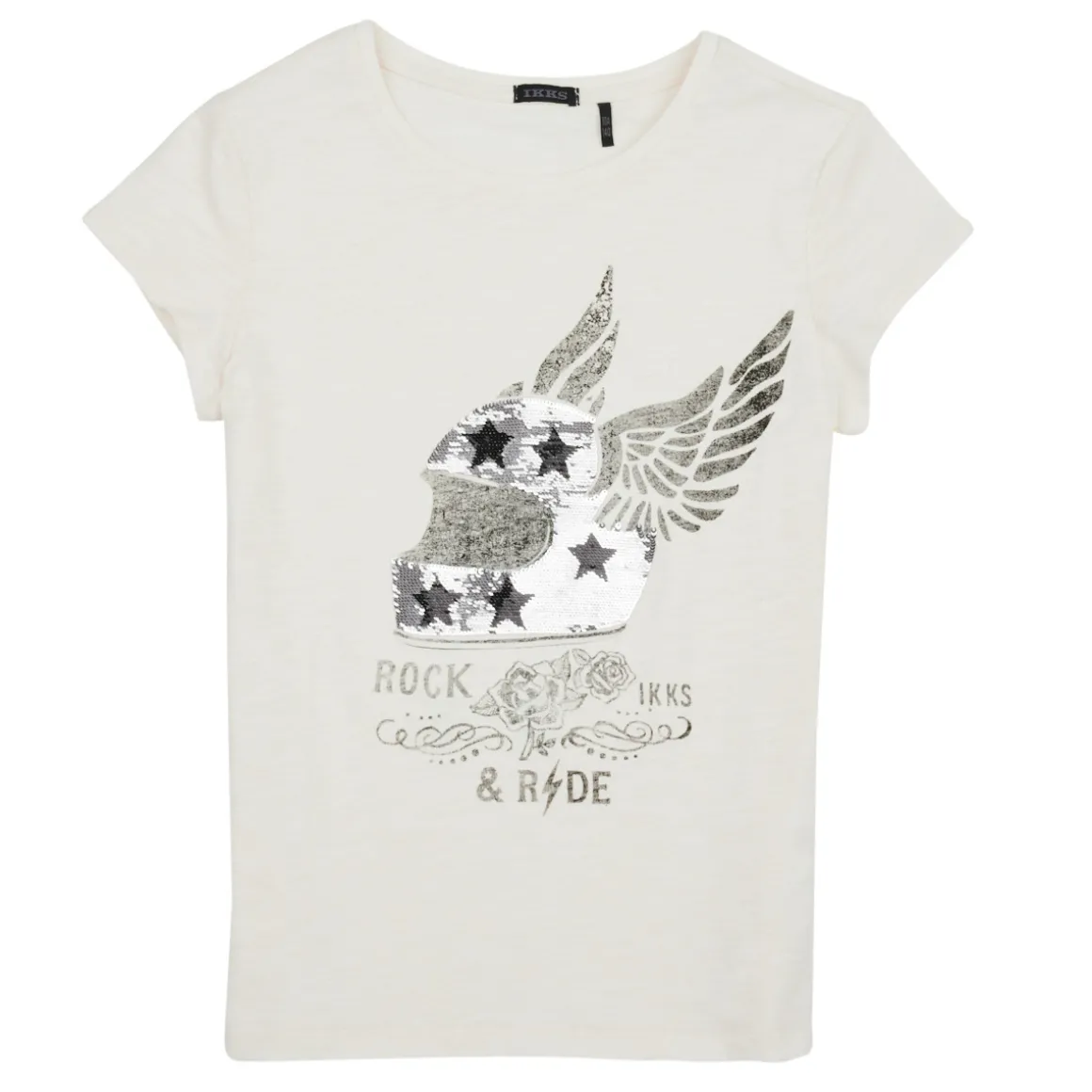 Comment dispenser nos enfants d’un bon T-shirt à manches courtes ? Surtout si celui-ci est imaginé par Ikks ! C’est dans une couleur blanche que ce modèle se décline. Sa confection est en coton (100%) . Avec lui, nos fillettes arborent un vrai look de modeuse !