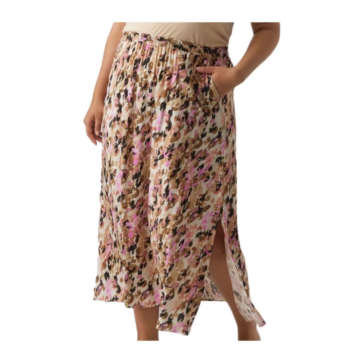 Craquez pour la jupe de la marque VERO MODA Grande Taille à prix bas ! Coloris : Beige/Rose Taille élastique Motif imprimé Composition : 100% Viscose