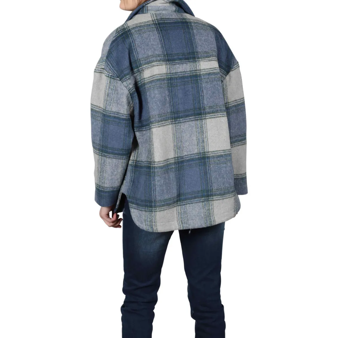 Surchemise à carreaux bleu, vert, marine et gris chiné