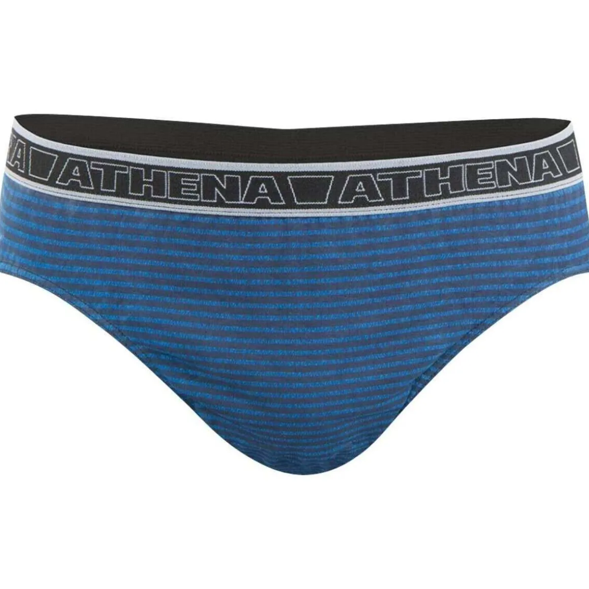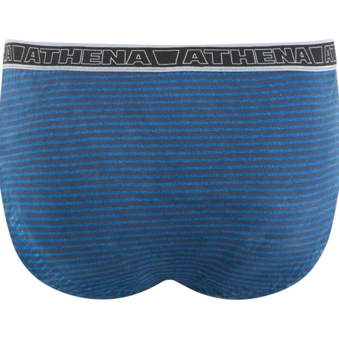 1 slip bleu uni avec taille élastiquée, nom de la marque en noir et rayures bleues