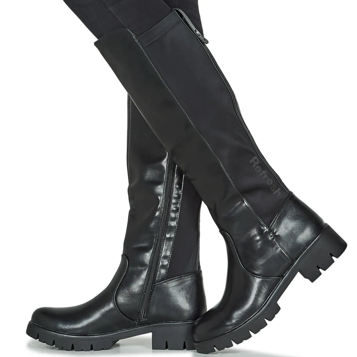 Beaucoup de goût et de féminité chez cette botte portant la signature de Refresh. Une tige en synthétique et un coloris noir signent les valeurs esthétiques de la marque. Elle associe également semelle intérieure en synthétique et semelle extérieure en caoutchouc. Un modèle qui nous suivra partout.