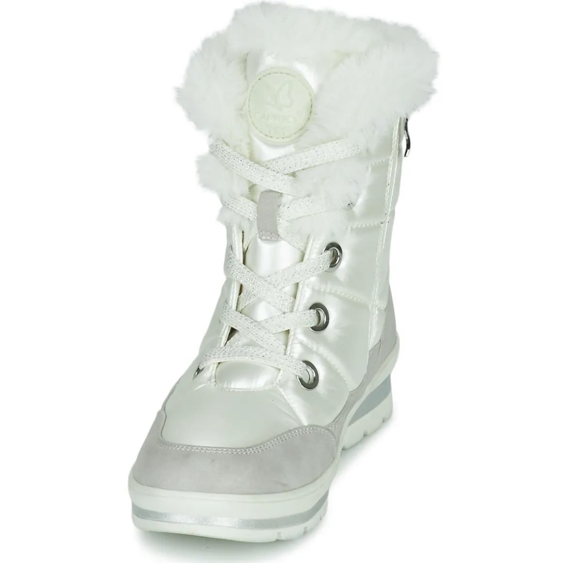Chaude et douillette, la botte de neige 26226 de la marque Caprice accompagnera toutes vos journées hivernales. Sa tige imperméable blanche en synthétique et textile lui permet d’apporter une bonne protection et le confort qui va avec. Grâce à sa semelle antidérapante en synthétique, le verglas et la neige passeront de terrains dangereux à terrains de jeux !