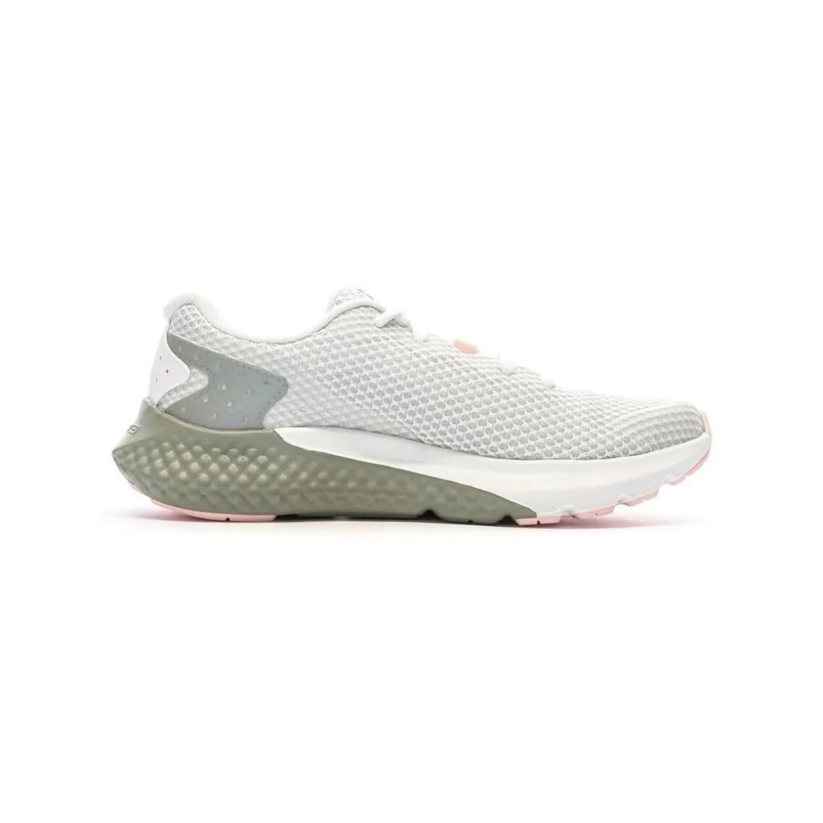 Optez pour les chaussures de la marque UNDER ARMOUR !Coloris : Blanc/Gris/Rose Surface : RouteDrop : 8mmAmorti : ExcellentTige en meshFermeture par lacets