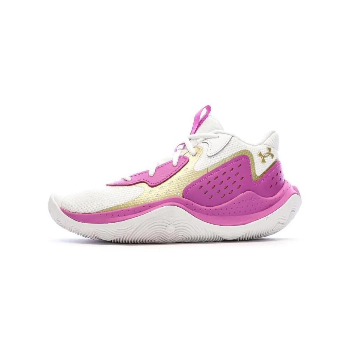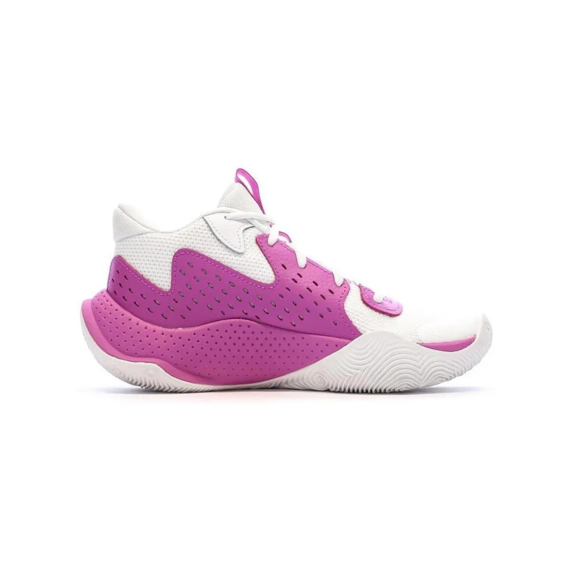 Craquez pour les chaussures de basketball de la marque UNDER ARMOUR !Coloris : Blanches/ViolettesTige textile synthétiqueFermeture lacetsSemelle intérieure en mousse Semelle intermédiaire Micro G® Semelle extérieure en caoutchouc résistant avec motif d’adhérence