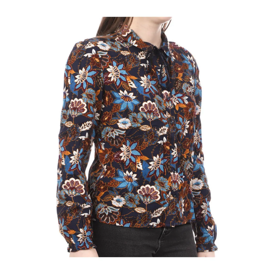 Chemise à fleurs pour femme de la marque Teddy Smith Manches longues Fermeture à boutons Coloris : Marine Imprimé fleurs Lien au col Composition : 100% Viscose