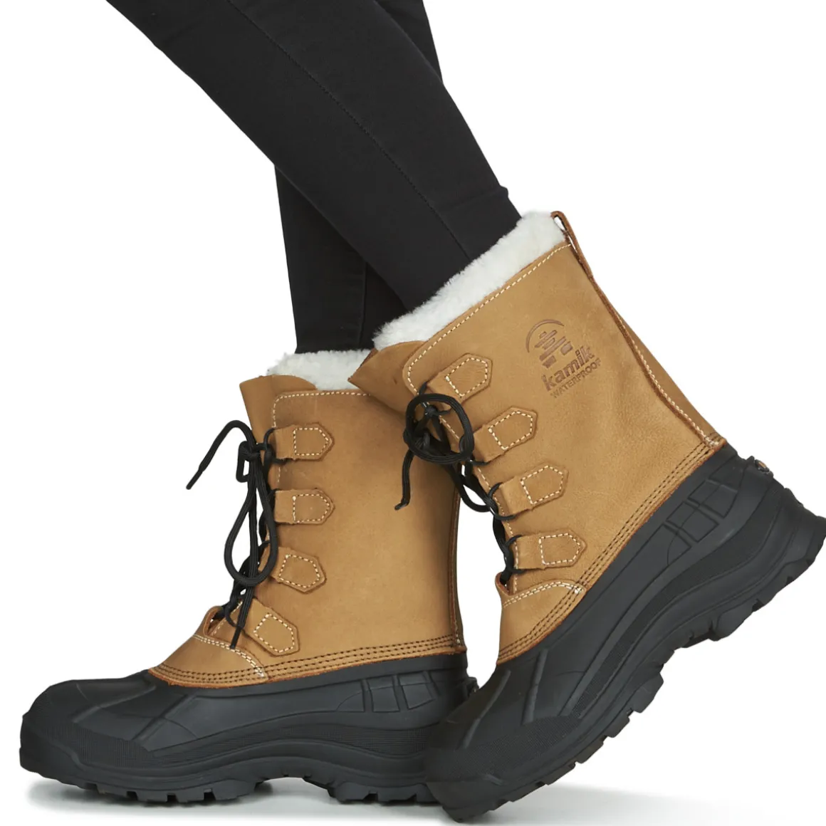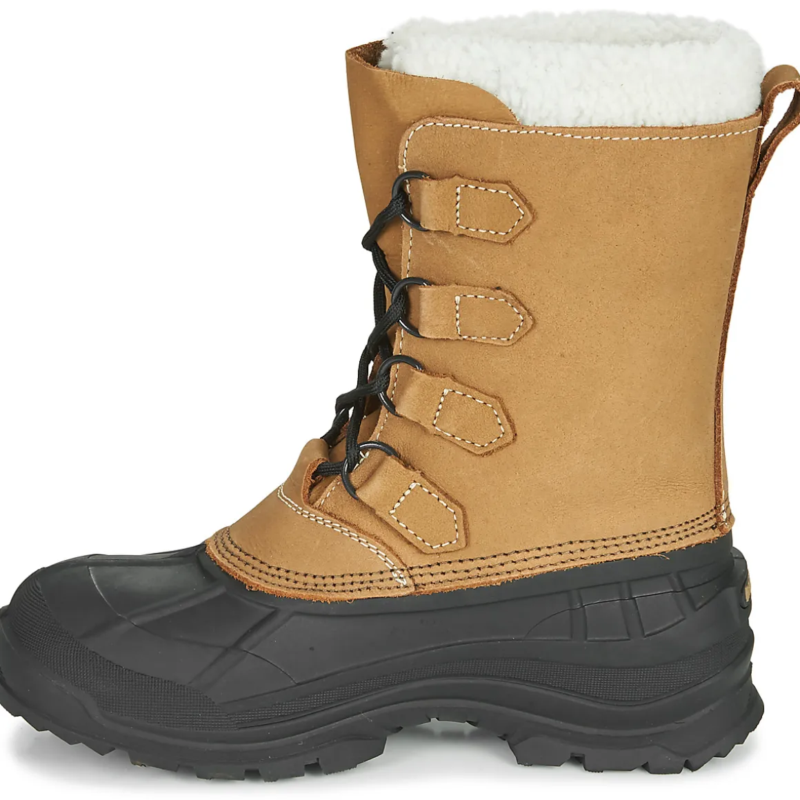 Tige imperméable ne cuir Nubuck coutures étanchées et fausse fourrure / chausson intérieur 9mm Zylextra amovible (77% de matière recyclée), doublure évacuant l’humidité / coque caoutchouc synthétique et imperméable et flexible. Semelle SNOWGRIPavec dessins de semelles profonds offrant une traction supérieure sur la neige