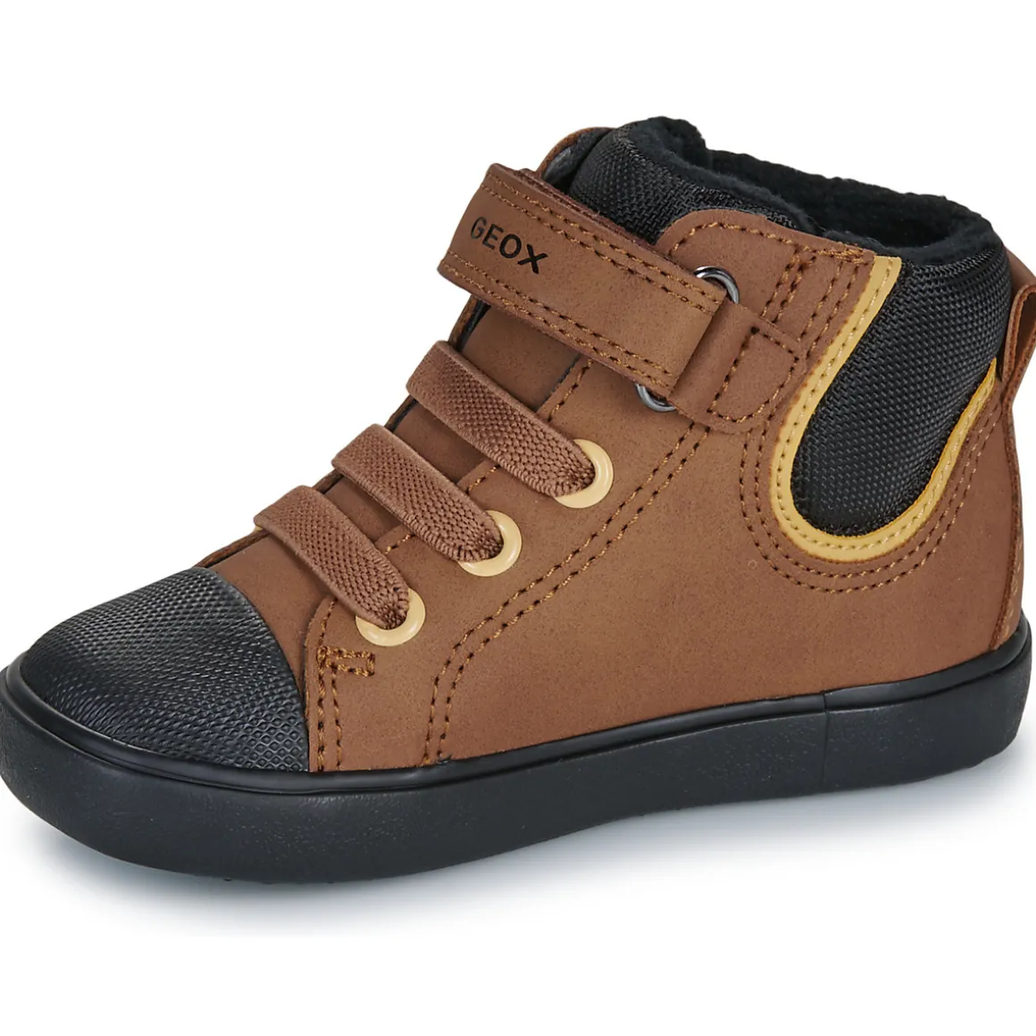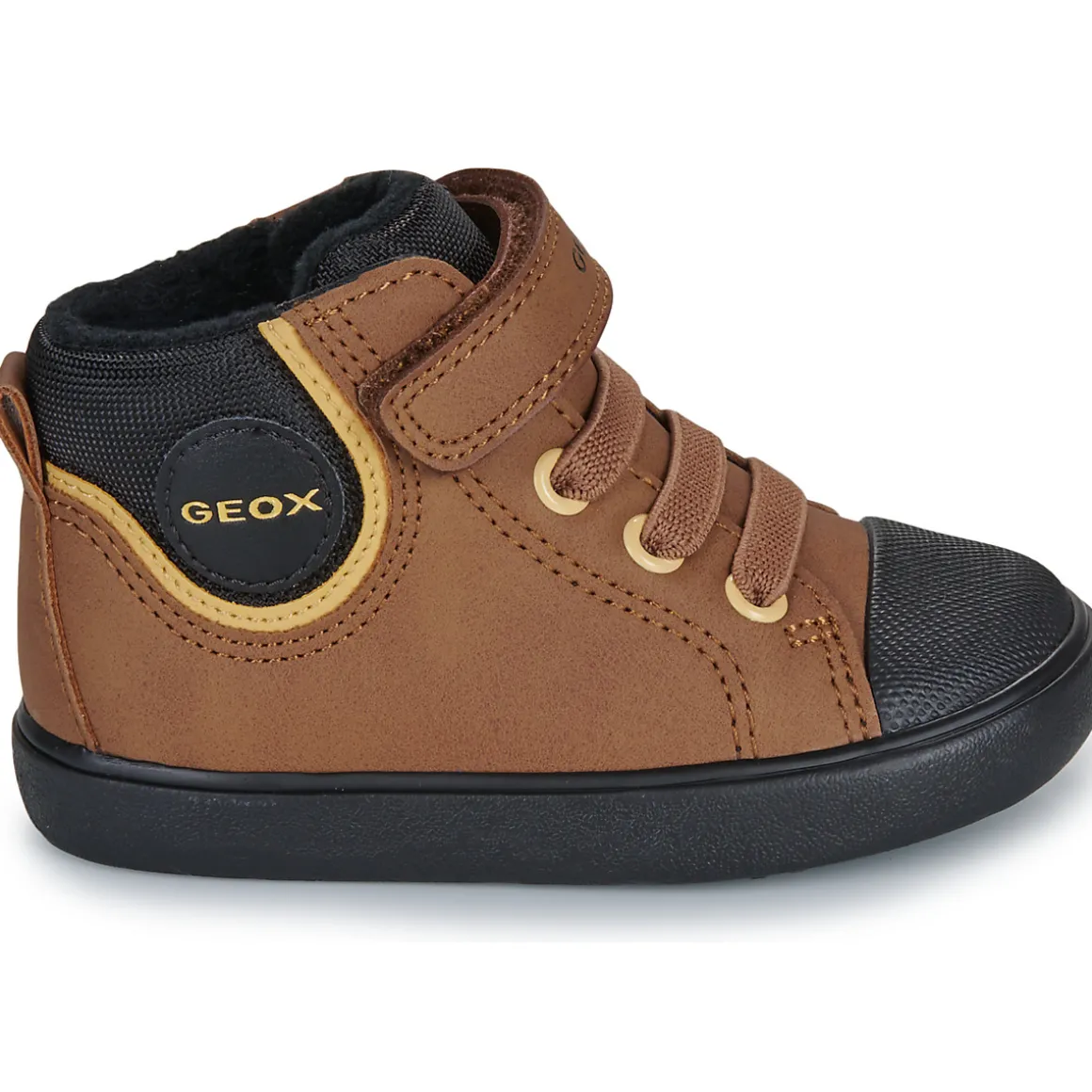 Cette basket montante imaginée par Geox conjugue confort et style. Avec sa tige en synthétique et textile marron, elle confronte l’héritage de la chaussure de sport à la mode actuelle. Montée sur une semelle en caoutchouc, elle renferme une doublure fabriquée en synthétique et textile. Ses finitions sont autant d’atouts qui viennent pimenter la chaussure.