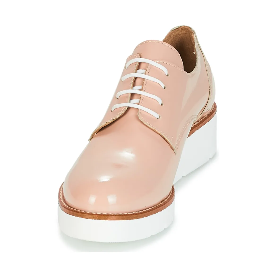S’il y a bien un derby à s’accaparer au plus vite, c’est incontestablement le Beata de chez Sweet Lemon.De couleur rose, il exprime son charisme tout en se revendiquant facile à vivre.Avec une tige en synthétique et une semelle en caoutchouc, la marque garde la qualité au cœur de ses préoccupations.Il est muni d’une semelle compensée de 4 cm.Il fait déjà des émules auprès des femmes modernes !