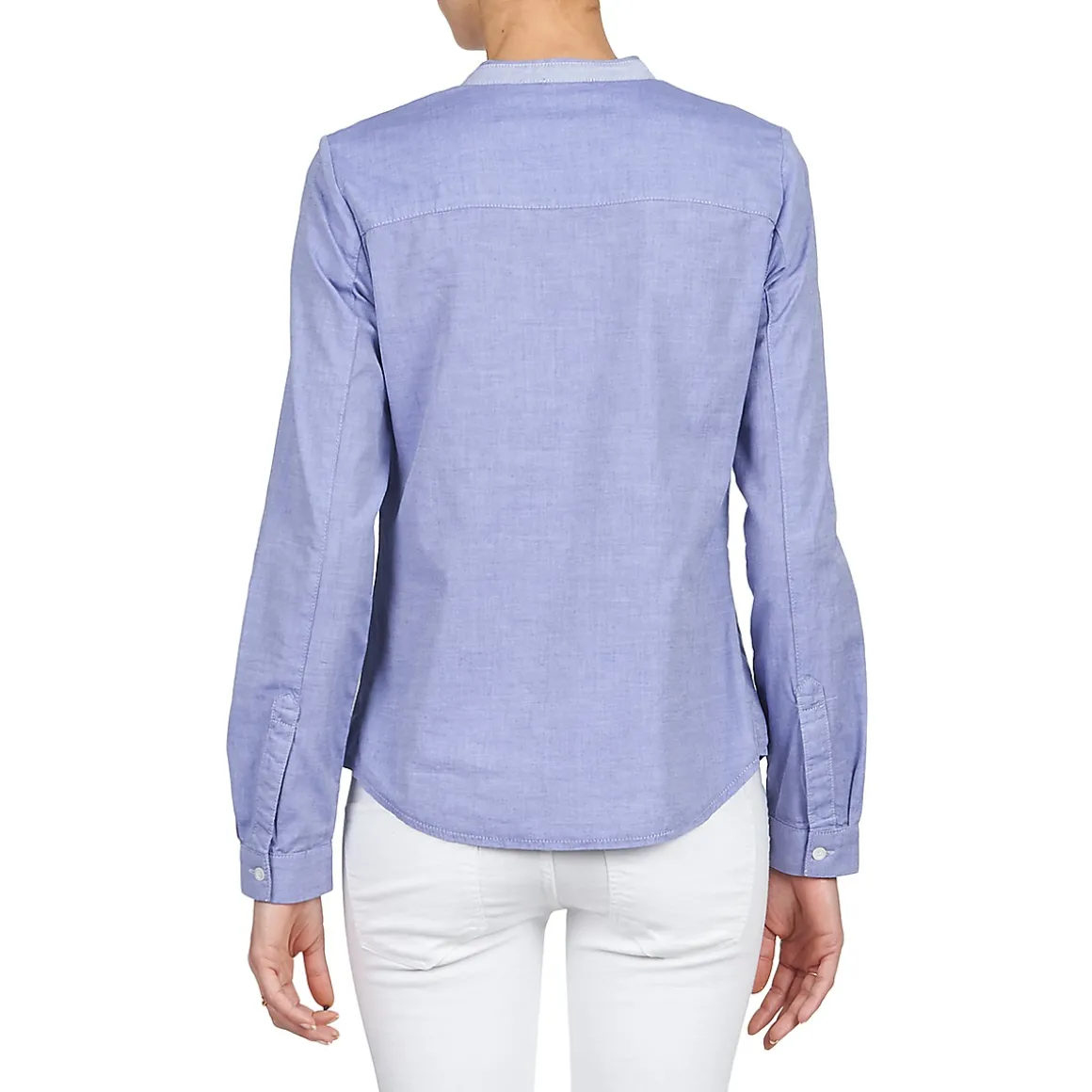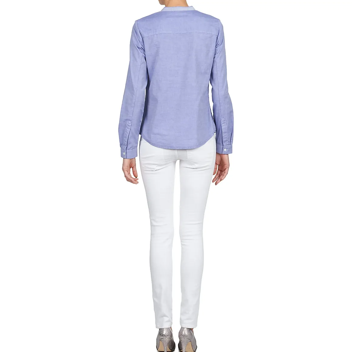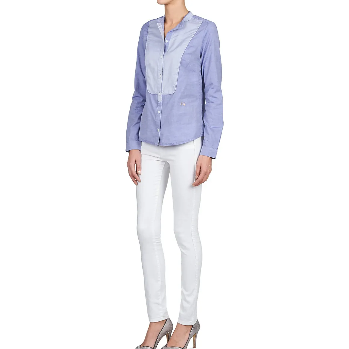 Envie d’un look un brin boyish ? Alors sans hésiter, on vous conseille cette chemise pensée par Kookai. Elle possède une coupe sage, avec un col haut, et affiche un empiècement contrastant au niveau de la poitrine, qui rappelle un peu les habits des garçons de café. Avec un chino et de jolis derbies, elle sera parfaite !