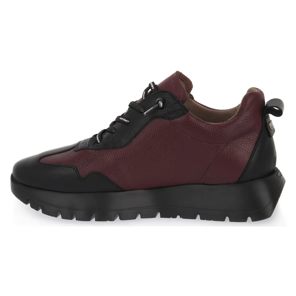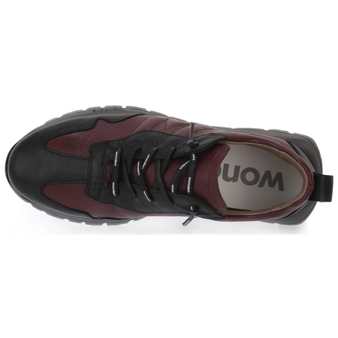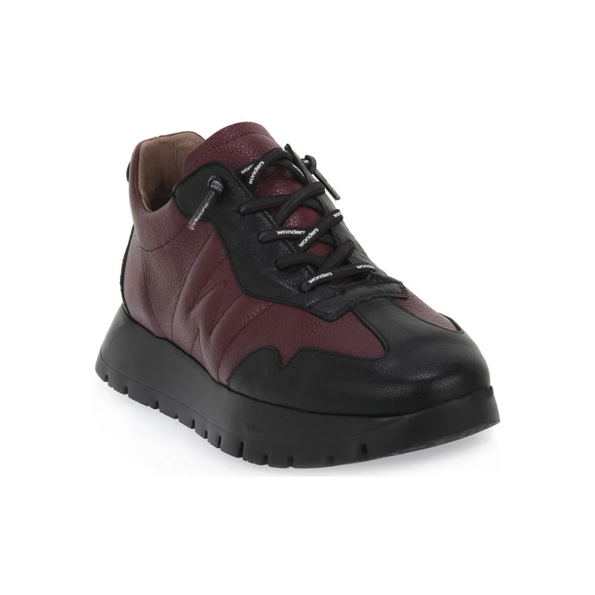 Basket Wonder avec tige en cuir confortable et pratique, fermeture à lacets élastiques et semelle intérieure MemoryGel amovible qui amortit chacun de vos pas. Chaussure pour femme avec semelle track développée à l’aide de la technologie WondersFly™ qui apporte une extrême légèreté et un confort au modèle. Semelle 100% Eva expansée. Fabriqué en Espagne par des mains artisanales. Couleur : Bordeaux/Noir.