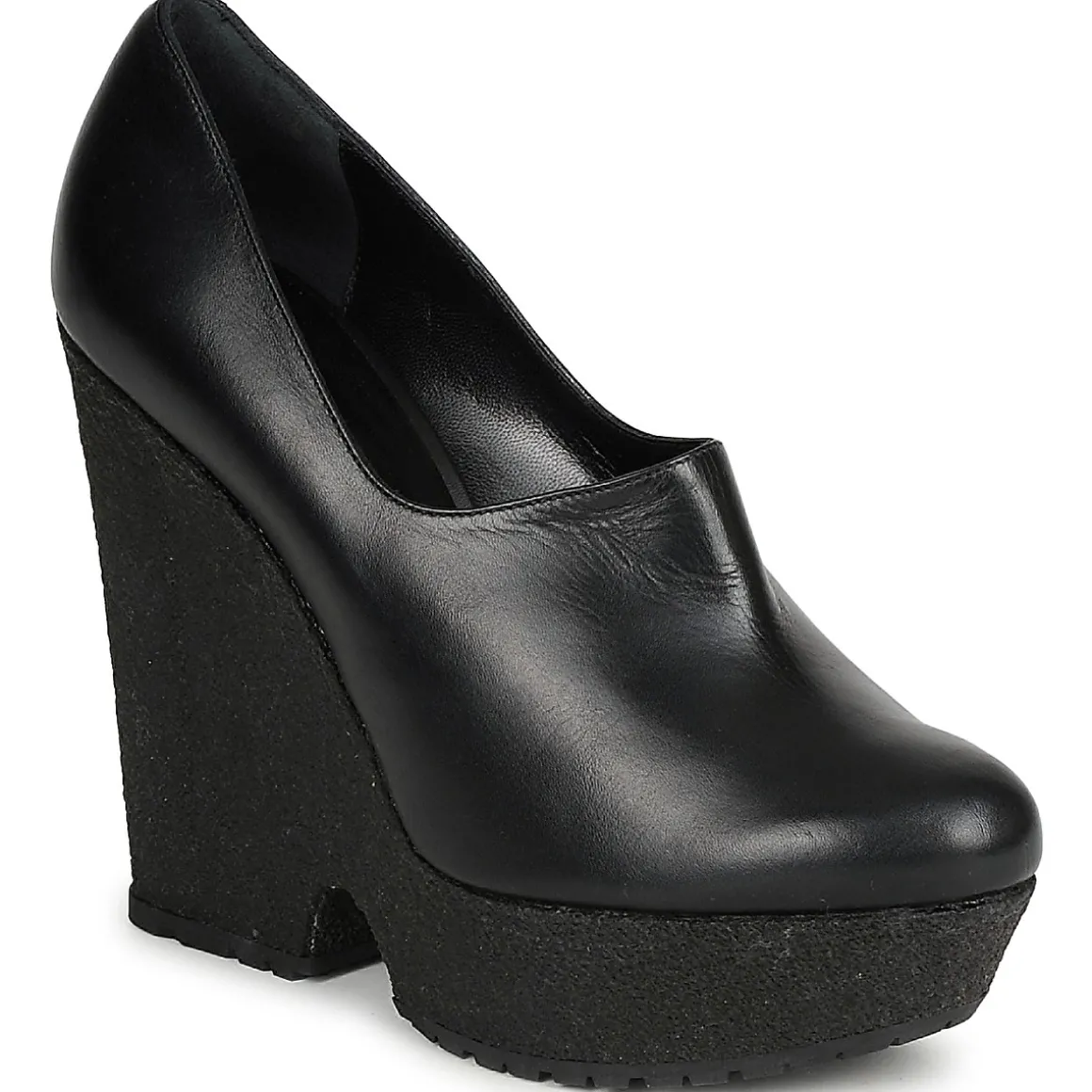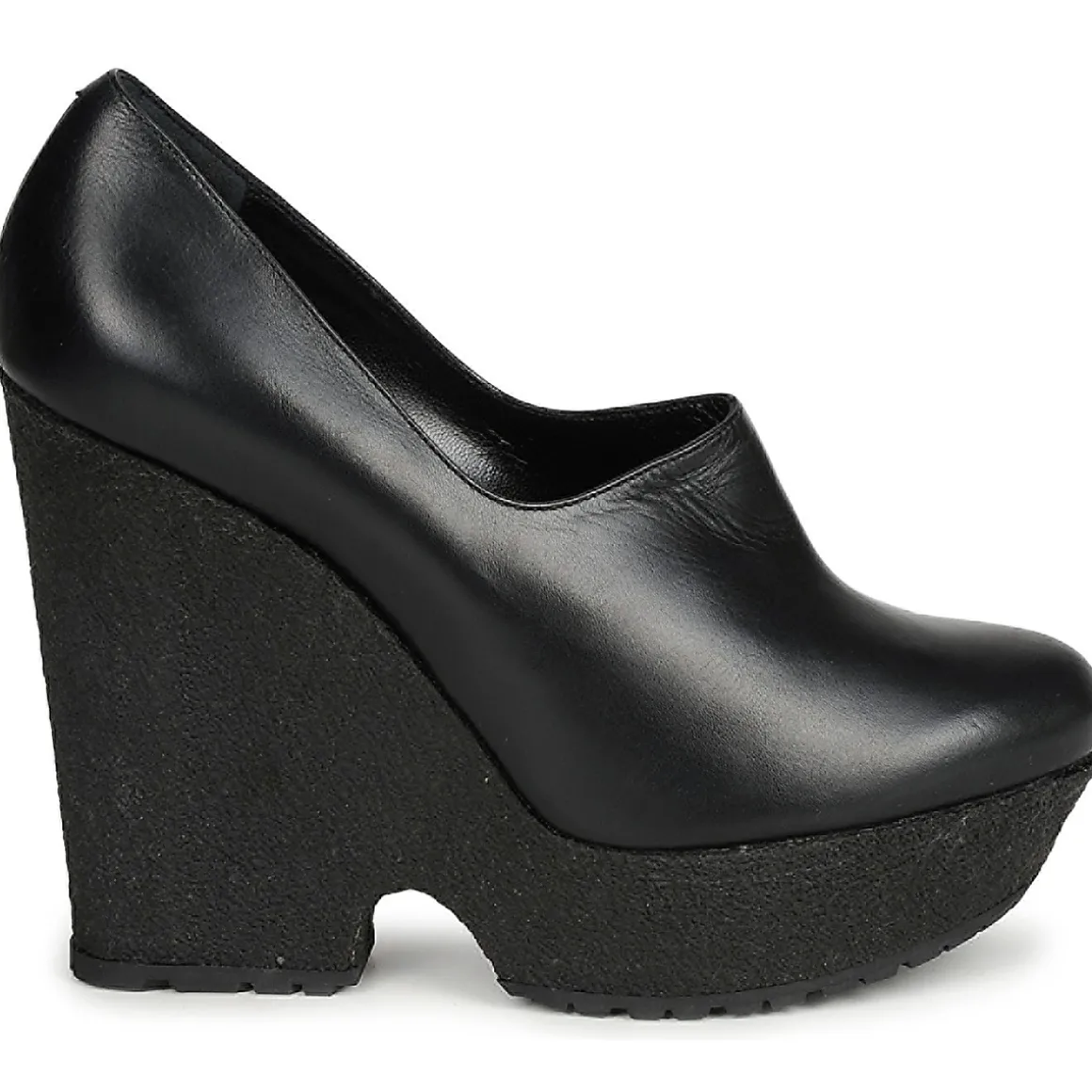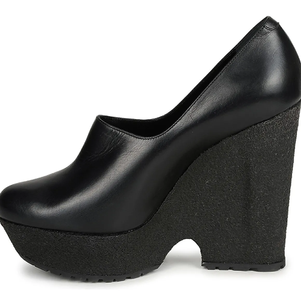 Low boot Sonia Rykiel en cuir. Silhouette épurée avec montage de la tige à base d’un empiècement unique. Semelle compensée laissant entrevoir une fente à la base du talon.