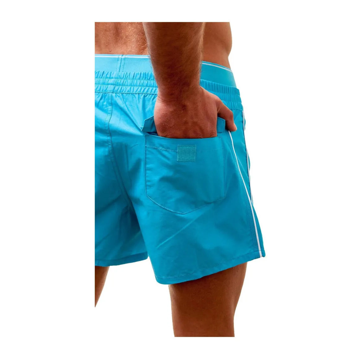 – Poches latérales plaquées et poche arrière zippée pour un rangement sécurisé.