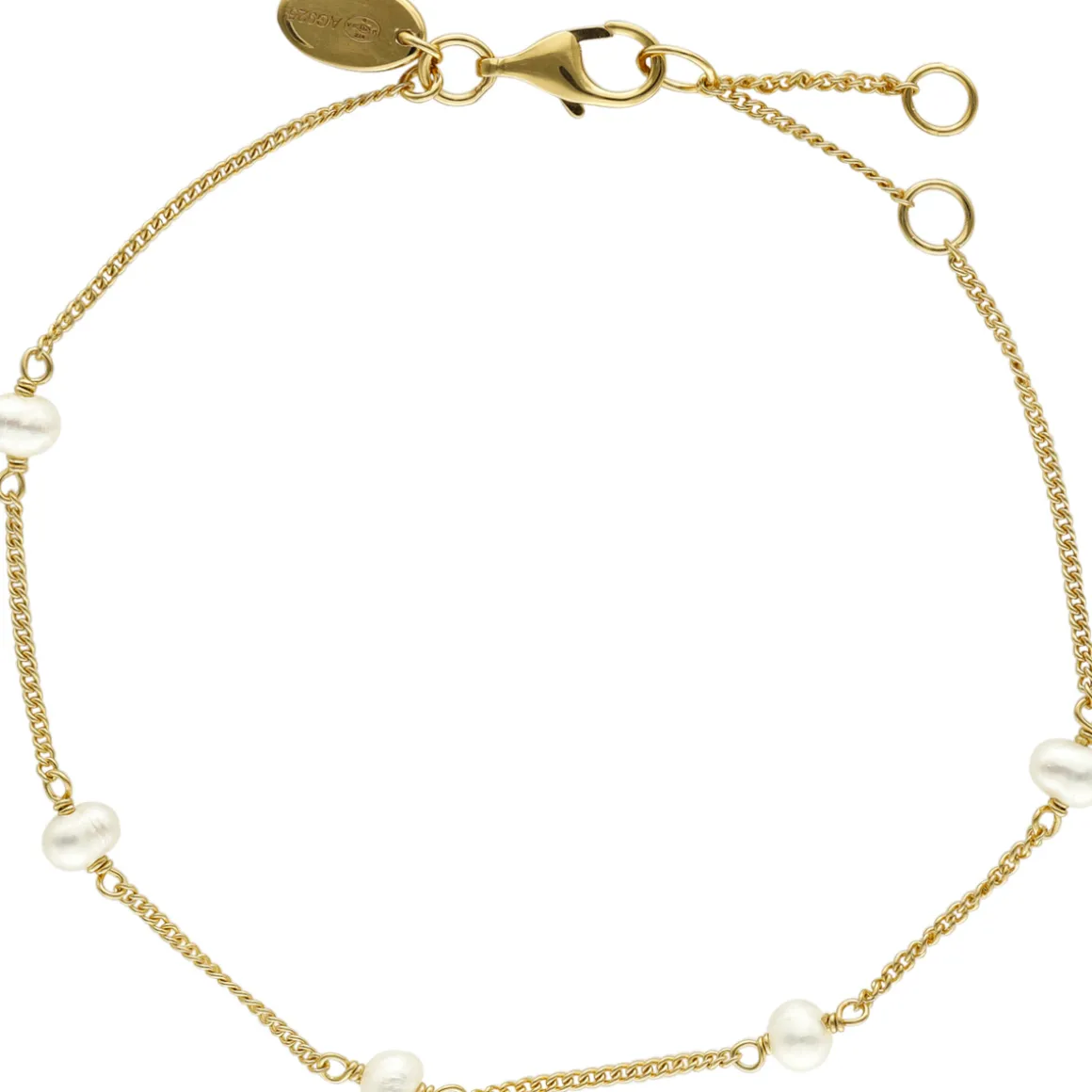 Bracelet Argent Doré Chaine Et Perles Naturelles Blanches