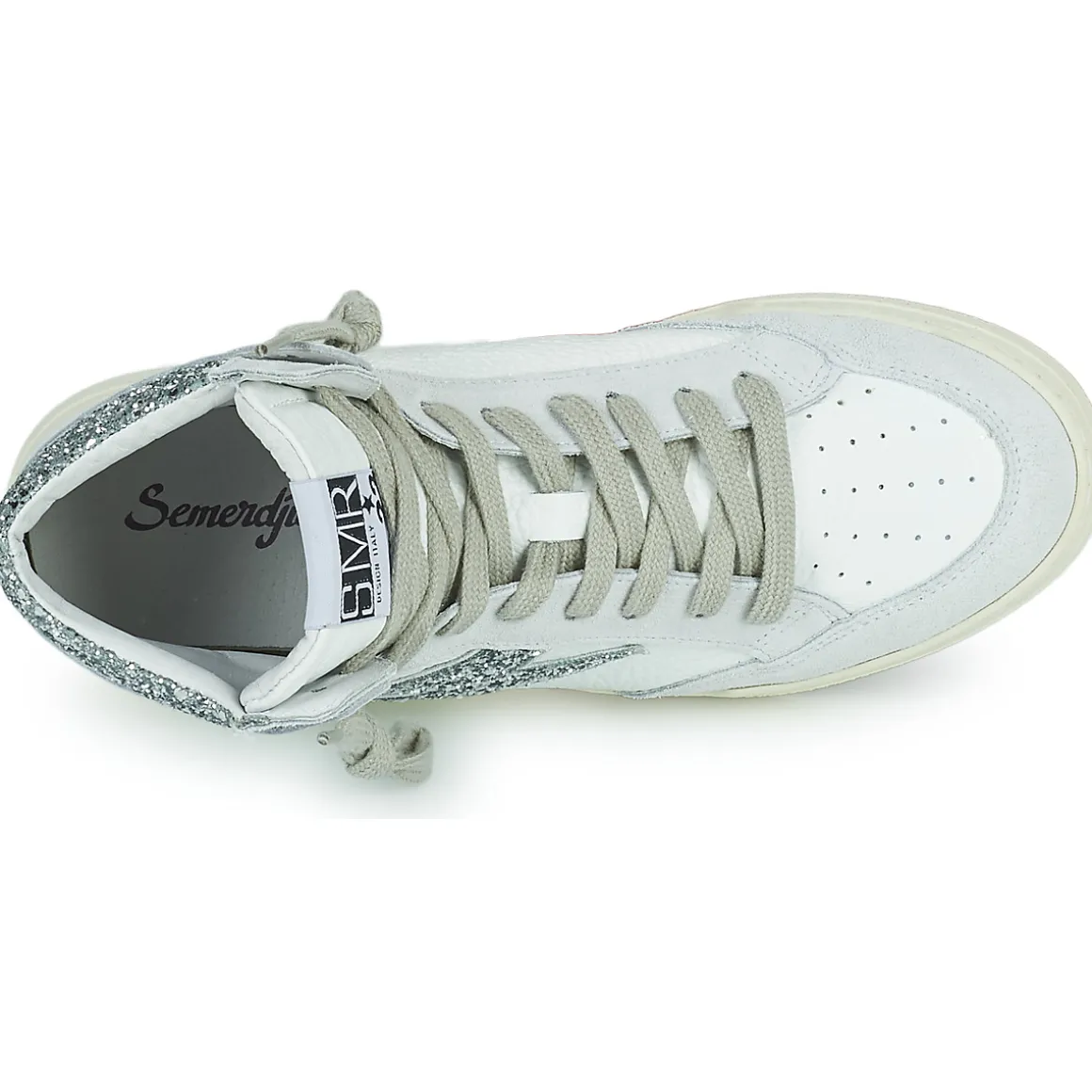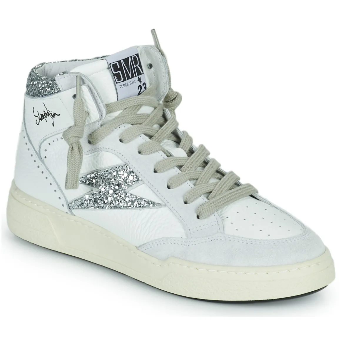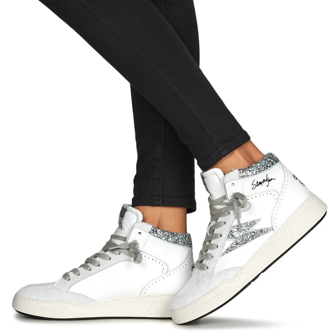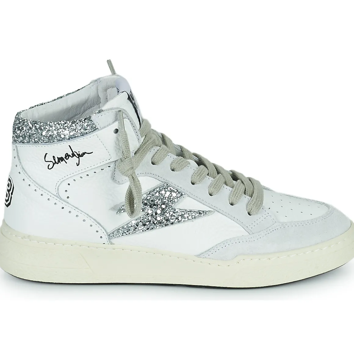 Cette basket montante imaginée par Semerdjian conjugue confort et style. Sa tige en cuir et textile et son coloris blanc lui confèrent une allure sportive très actuelle. La Braga renferme une doublure en cuir et est montée sur une semelle en synthétique. Cette saison, on la retrouve en version glamour, juchée sur un talon de 4 cm. La sneaker urbaine par excellence.