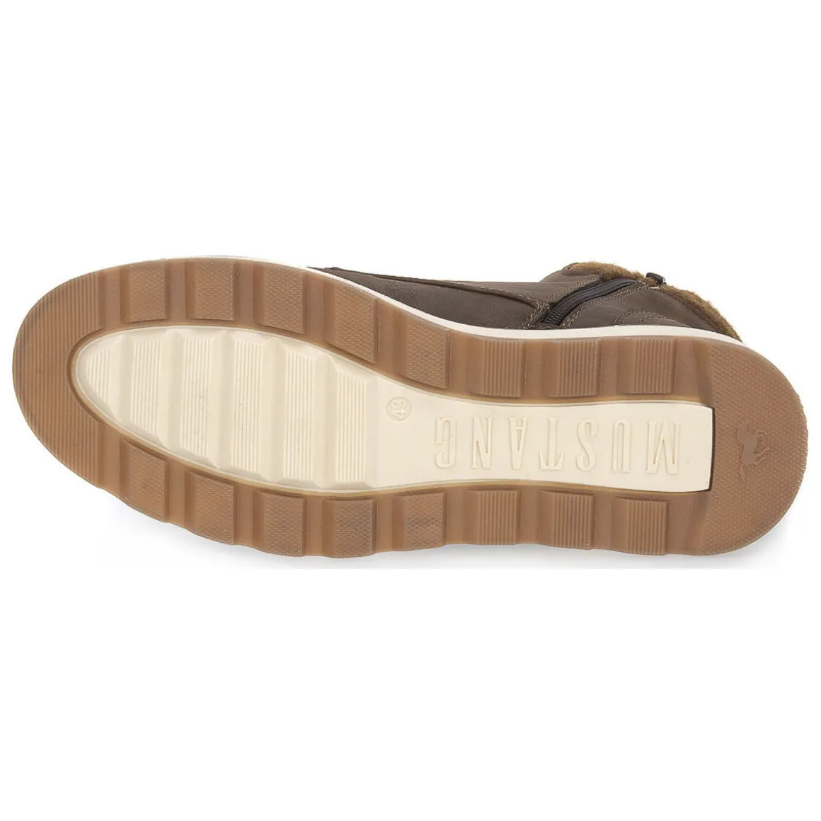 Bottines Mustang pour hommes avec tige en cuir écologique et doublure en fourrure synthétique. Confort et praticité dans une seule chaussure. Fermeture avec lacets et zip latéral. Semelle en caoutchouc. Couleur: Marron foncé.