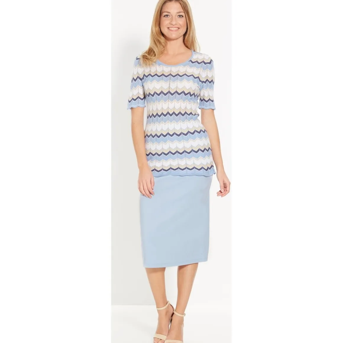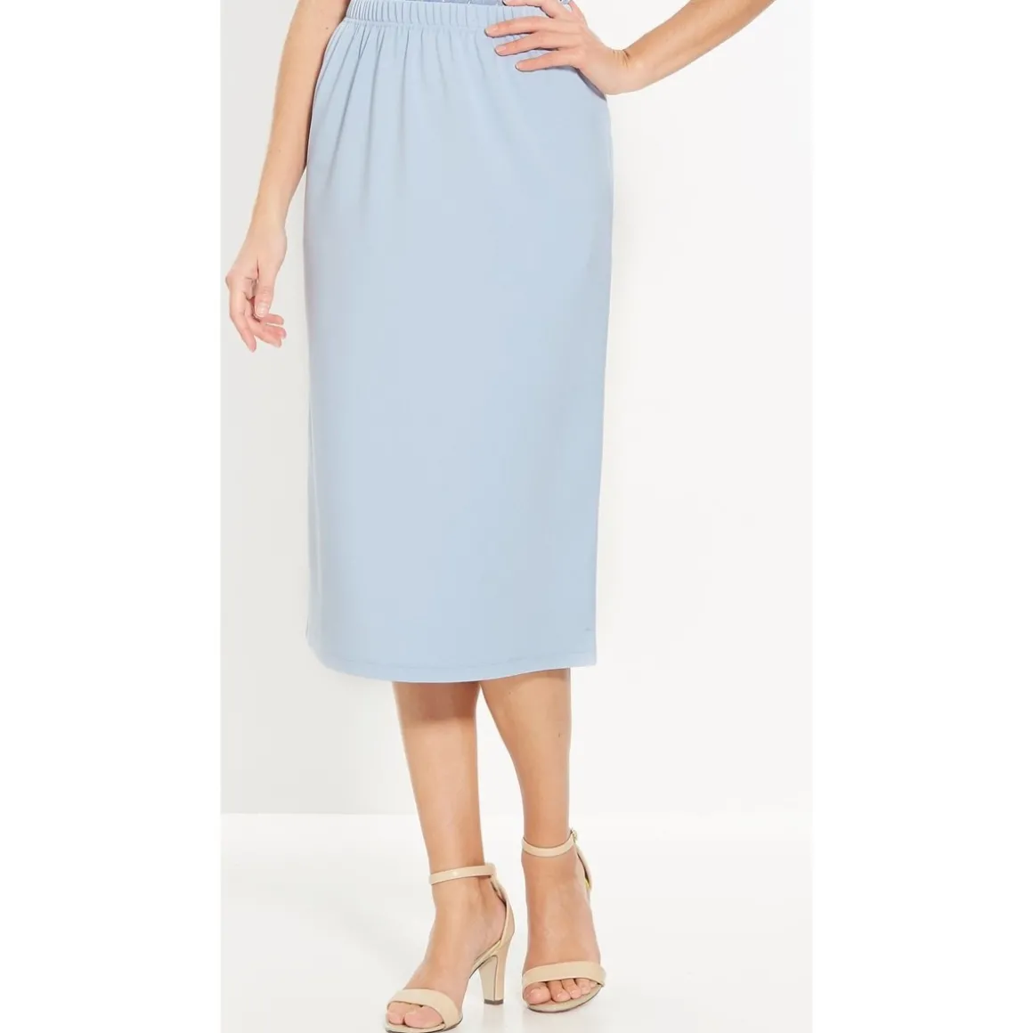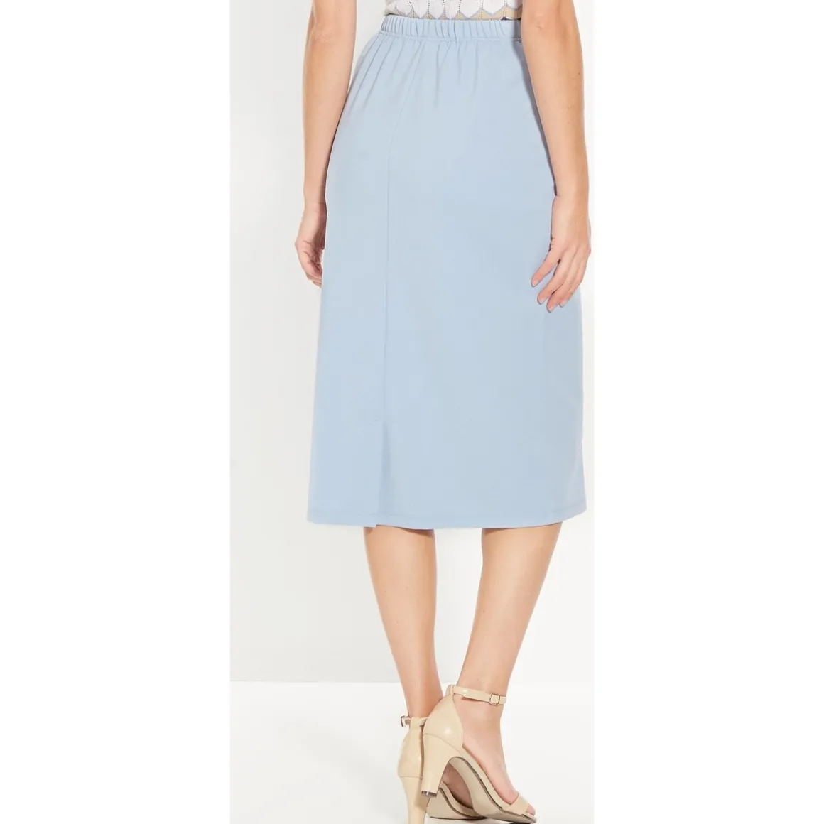 Une jupe confortable et facile à assortir ! Taille entièrement élastiquée. Fente au dos. Ourlet invisible. Maille infroissable et au beau tomber lourd : ne se déforme pas et se lave en machine. Longueur : 73 à 75 cm selon les tailles.Photo retouchée