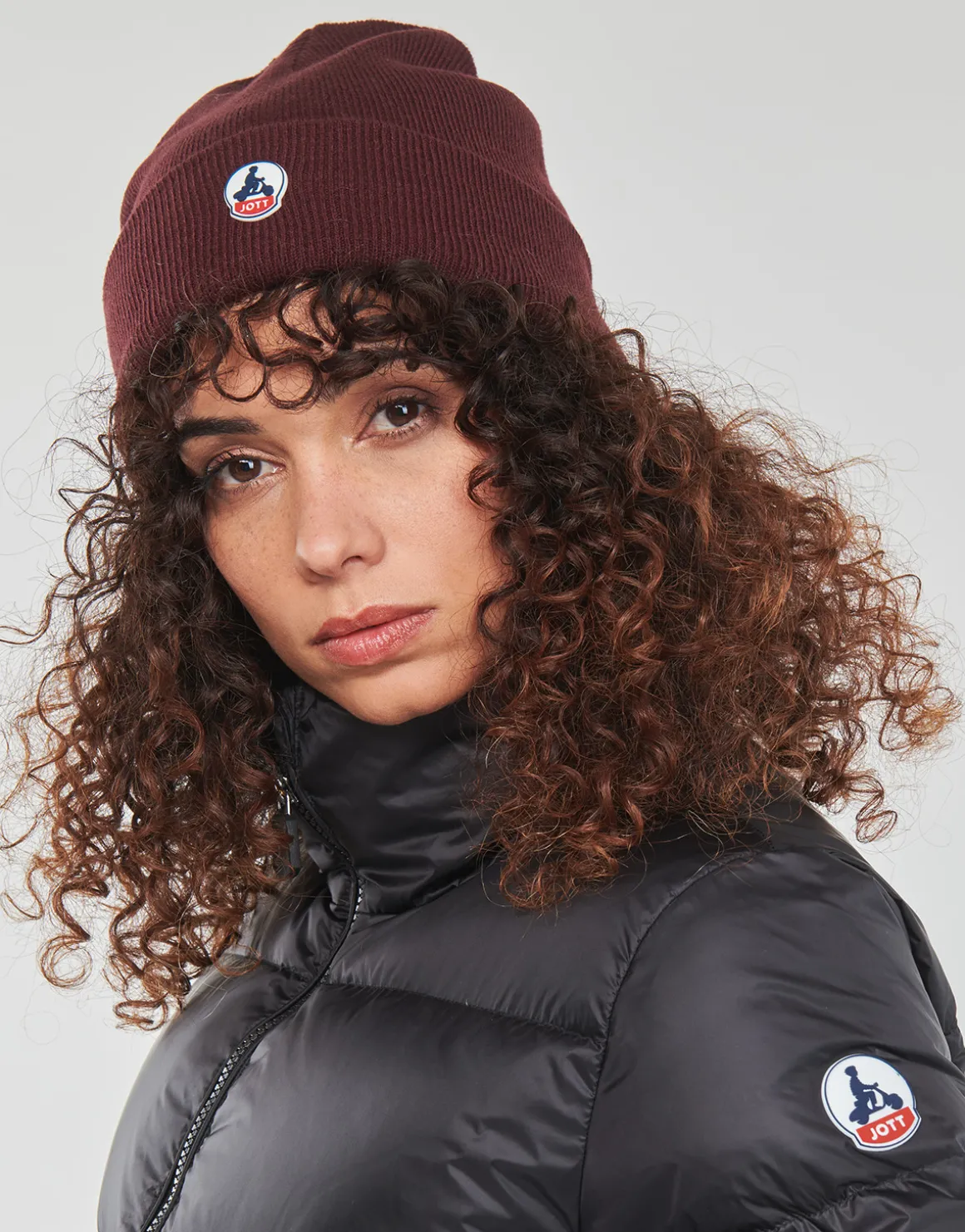 Doudoune à capuche Jott iconique en nylon avec coupe ajustée / 2 poches latérales zippées invisibles / Patch logo en feutre sur la manche gauche.