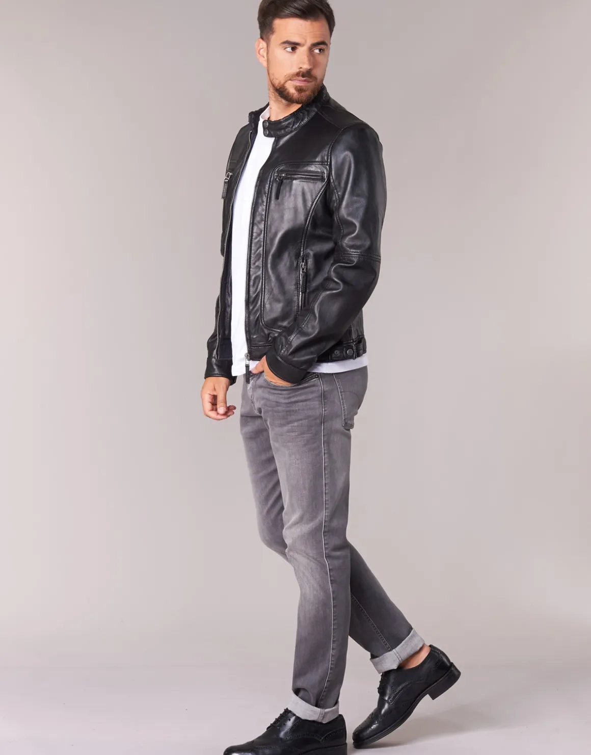 Extérieur : cuir de mouton / Doublure : manches 100% polyester ; corps 100% coton / Finition cuir lavé