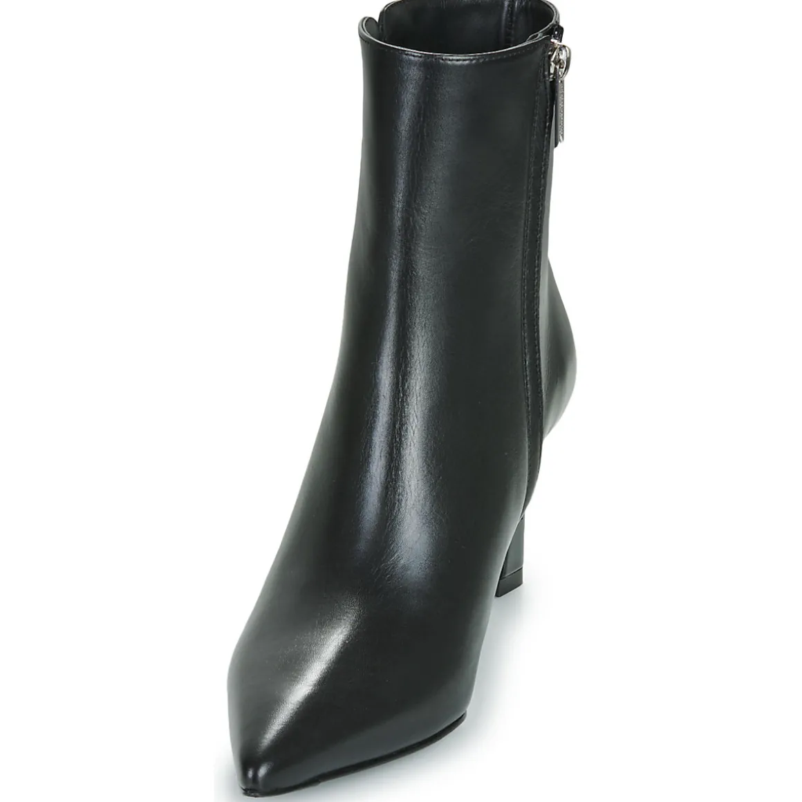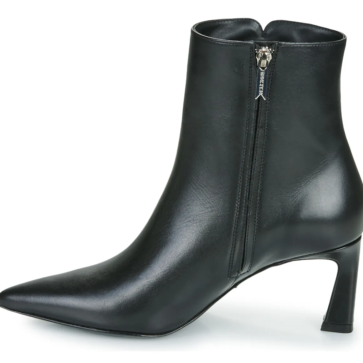 Quoi de plus indispensable en hiver que de porter une paire de bottines noire aux pieds ? Voici peut-être celle qu’il vous faut. Tige en cuir de veau et semelle extérieure en cuir : rien n’a été laissé au hasard pour nous plaire. Elle a même le bon goût d’être montée sur un talon de 8 cm.