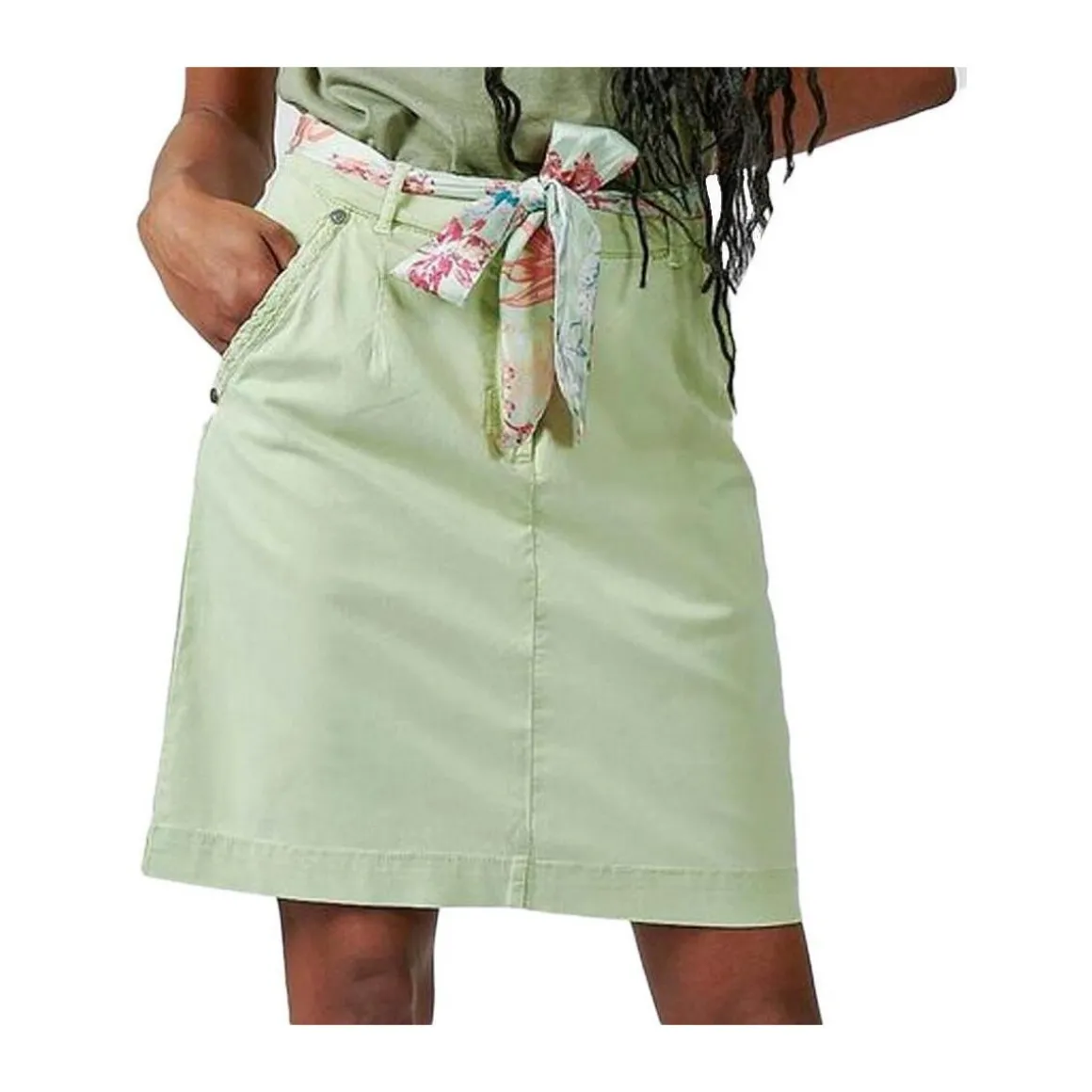 Optez pour cette jupe Kaporal Coloris : Verte Composition : 54,00% Tencel 43,00% coton 3,00% ElasthanneCeinture à nouer à la tailleBraguette zippée2 poches latérales2 poches au dosLogo métallique