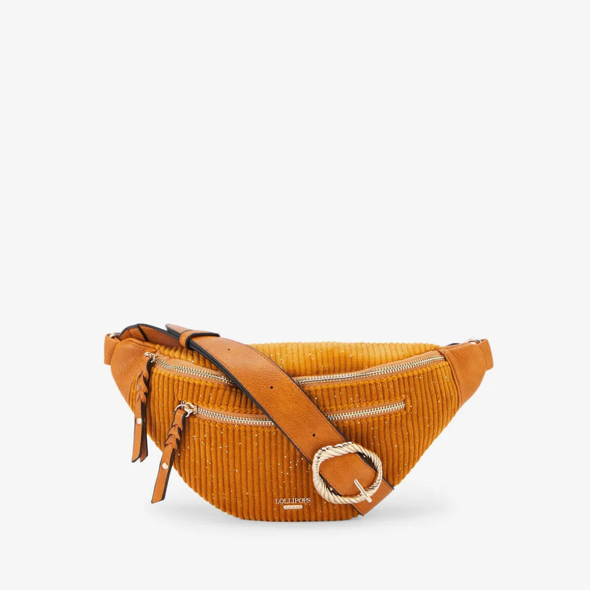 Ceinture banane jaune en velours côtelé et synthétiqueBandoulière réglableFermeture principale zippéeUne poche zippée à l’avantLogo Lollipops doré en reliefUne poche zippée et une poche plaquée à l’intérieurHauteur : 15 cmLargeur : 8 cmLongueur : 28 cmCollection : Riff