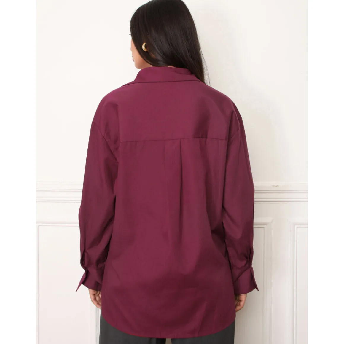 Chemise classique oversize avec une poche au niveau de la poitrine.Petites fentes sur les côtés.