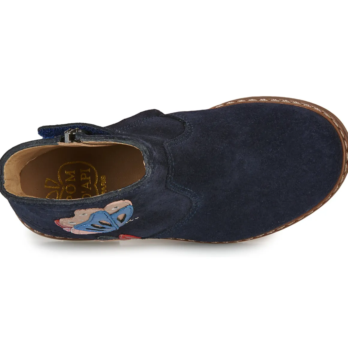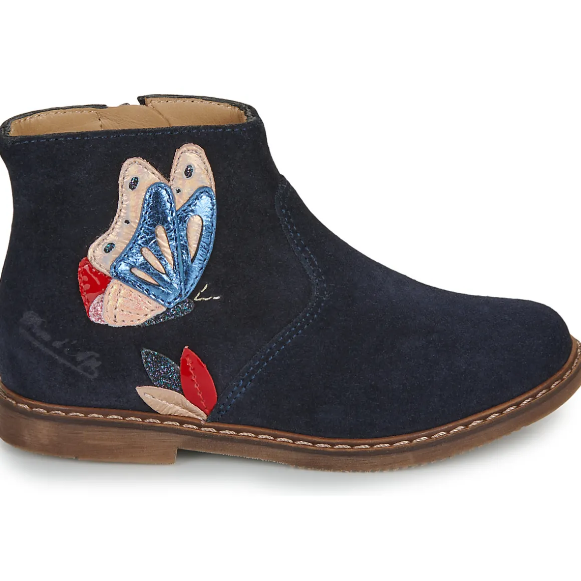 Une véritable arme de tendance massive que cette bottine bleu marine.Ses finitions contemporaines mais surtout une broderie papillon lui apportent ce petit truc en plus qui fait tout.De la mode, du charme et pour le reste, c’est à vous de jouer ! On dit quoi ? Merci Pom d’Api.