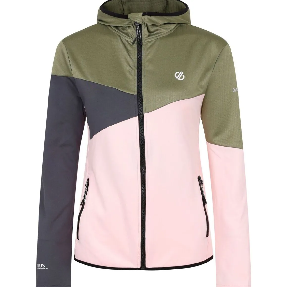 Dare 2B – Haut de sport CONVEY – Femme. Design/motif: Panneau contrasté, Logo. Ourlet: Extrafort extensible. Matériau: Intérieur brossé, Ilus Core Stretch (léger, chaud et extensible), Texturé. Caractéristiques des matériaux: Antibactérien, Sans produit chimique. Capuche: Attachée. Encolure: Col montant, À capuche. Type de poches: 2 poches basses, Zippée. Type de manches: Manches longues. Protection solaire: UPF 50+. Fermeture: Fermeture éclair. Composition: 100% Polyester recyclé. 36 FR: 81 cm. 38 FR: 86 cm. 40 FR: 91,5 cm. 42 FR: 96,5 cm. 46 FR: 106,5 cm. Ref: UTRG12050