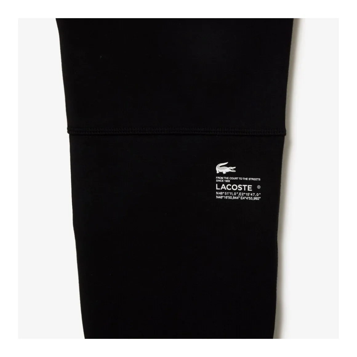 XF0343 TRACKSUIT TROUSERS Estos pantalones una pieza innovadora en tu guardarropa combinan la inspiración deportiva con la moda y un nuevo espíritu creativo elevando tu estilo en cualquier ocasión. Confeccionados en un exclusivo tejido de doble cara elástico que fusiona algodón orgánico y poliéster reciclado ofrecen una comodidad natural en la cintura y un ajuste ceñido en el tobillo. Su diseño funcional incluye un bolsillo interior con cremallera para guardar tus esenciales dos bolsillos laterales y un bolsillo trasero todos con tiradores invisibles. Los detalles de marca como el cordón de zig-zag en la cintura y el cocodrilo de silicona bajo el bolsillo junto con las referencias impresas a la historia de la marca completan este imprescindible. Producto: Pantalones.Marca: Lacoste (se infiere por el cocodrilo y la historia de la marca).Estilo: Moderno deportivo de moda urbano.Materiales: Tejido: Doble cara elástico.Composición: Algodón orgánico y poliéster reciclado.Corte y Ajuste: Ajuste natural y cómodo en la cintura.Perneras ajustadas en el tobillo.Funcionalidad: Bolsillo interior con cremallera.Dos bolsillos laterales.Bolsillo trasero.Tiradores invisibles en bolsillos delanteros y traseros.Lazo para llaves en el bolsillo derecho.Detalles de marca: Cordón de zig-zag en la cintura cocodrilo de silicona bajo el bolsillo etiquetas impresas con referencias (fecha de creación 1933 coordenadas de Troyes y París).Bolsillo: Bolsa de bolsillo en light jersey.