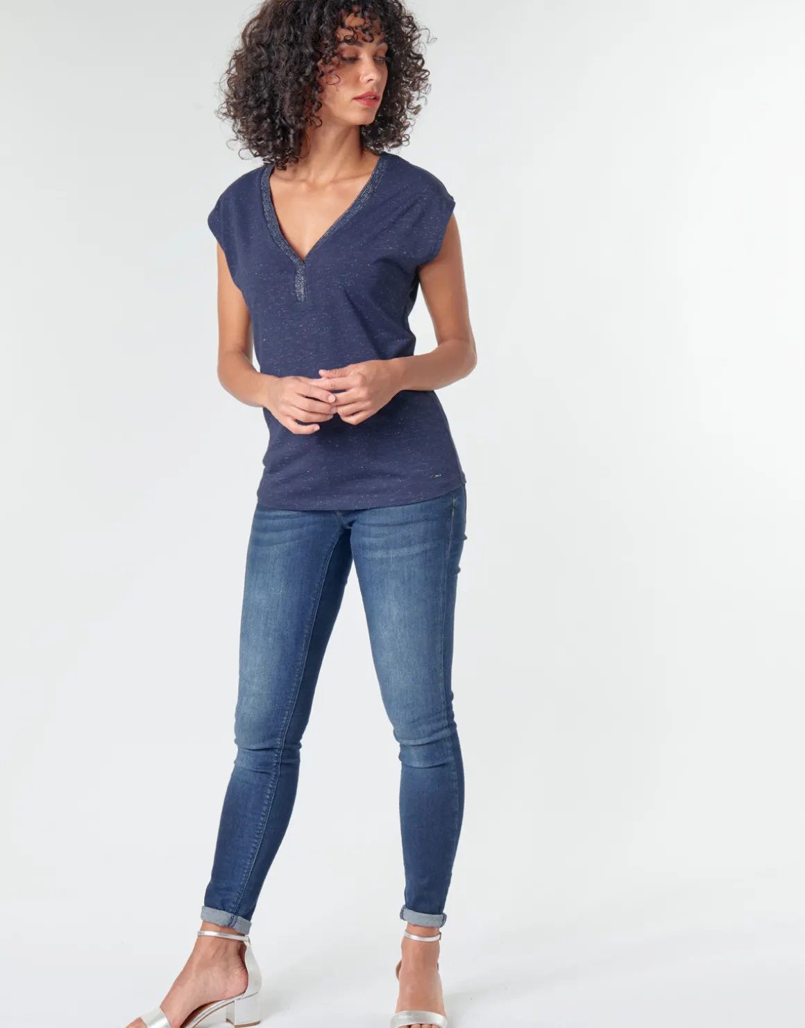 Le T-shirt à manches courtes est un basique qu’il ne faut pas oublier, surtout s’il est créé par la marque Morgan ! Couleur bleue et composition en polyester (70%) et viscose (25%) et 5 sont les principaux atouts de celui-ci. Facile à accorder à nos tenues du quotidien, c’est déjà notre préféré de la saison.